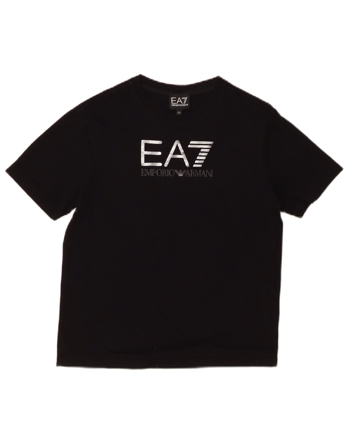 EMPORIO ARMANI Jungen-T-Shirt mit Grafik, 11–12 Jahre, schwarze Baumwolle