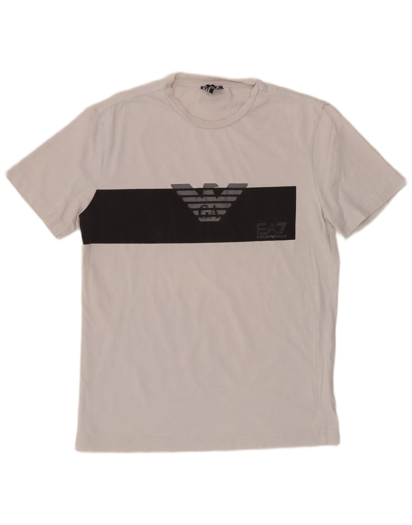 EMPORIO ARMANI Herren-T-Shirt mit Grafik, Größe S, weiße Farbblock-Baumwolle