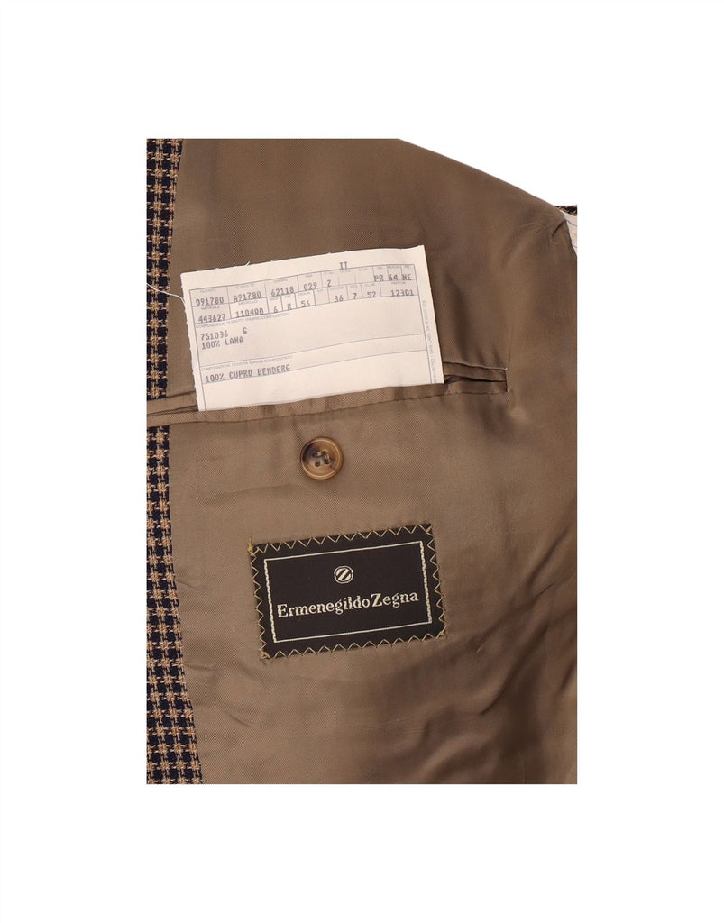 ERMENEGILDO ZEGNA Mens 2 Button Blazer Jacket IT 56 2XL Brown Houndstooth