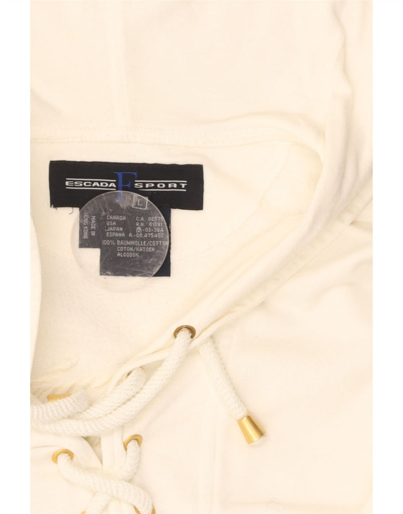 ESCADA Womens Graphic Hoodie Jumper UK 16 Large Off White Floral Cotton