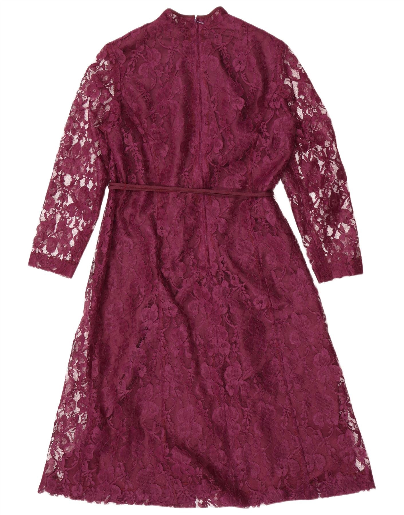 ESCO Damen-Langarmkleid in A-Linie, Größe 46, groß, lila, geblümt, Polyester