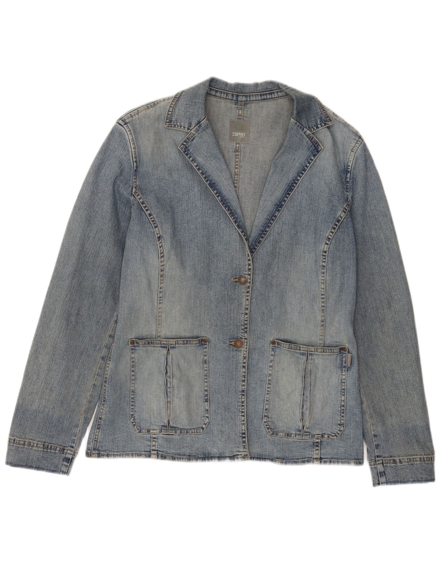 ESPRIT Damen-Jeans-Blazer mit 2 Knöpfen, UK 16, Größe L, Blau, Baumwolle