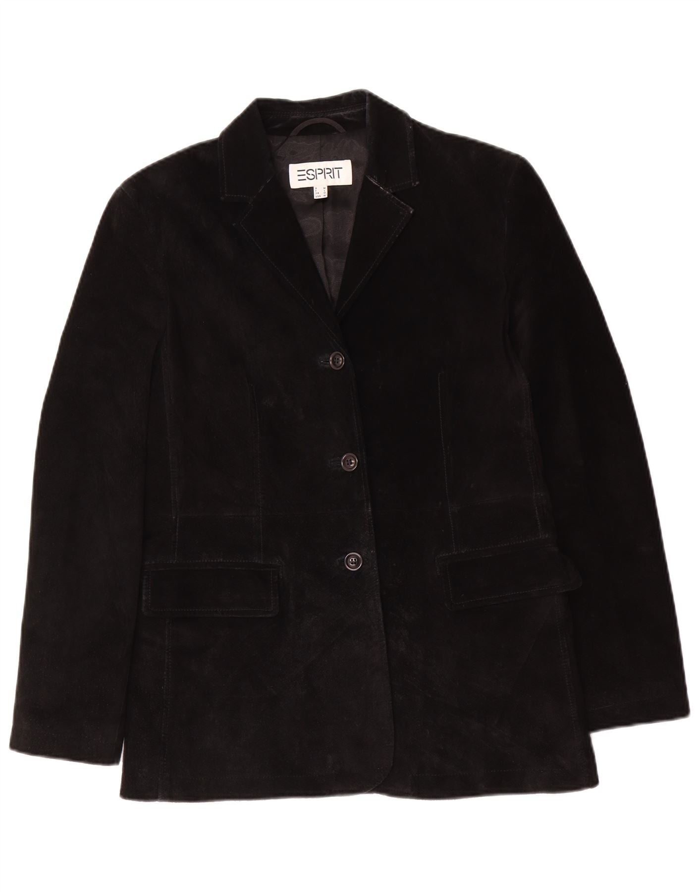 Esprit Damen-Blazerjacke aus Wildleder mit 3 Knöpfen, UK 14, mittelschwarzes Leder