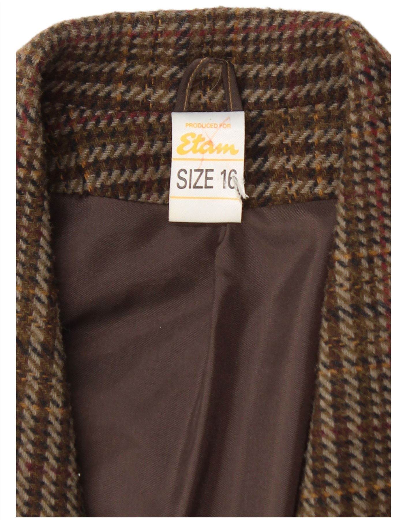 ETAM Damen-Zweireiher-Blazerjacke, US 16 2XL, braun kariertes Acryl