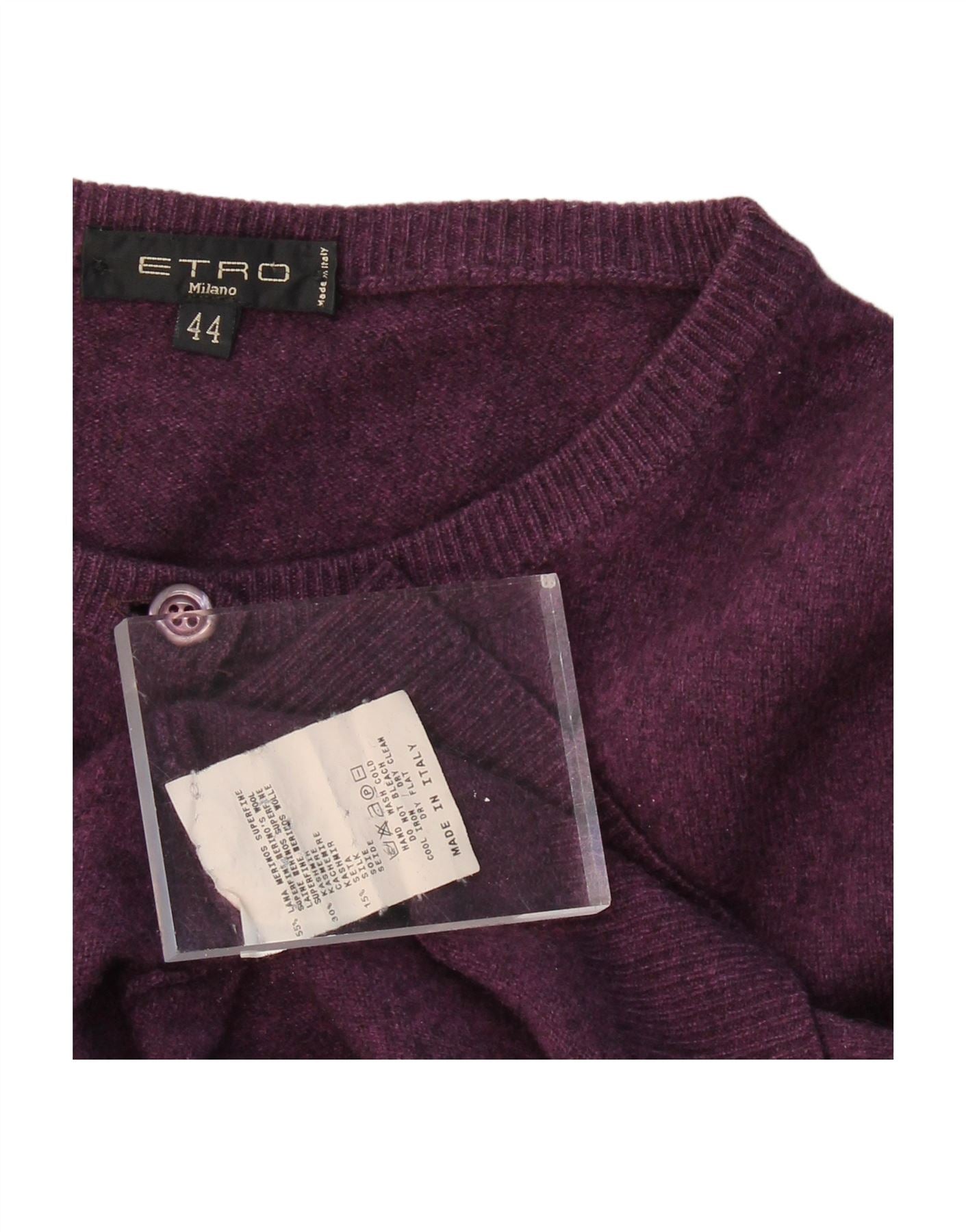 - AI Description: This Etro women's Cardigan Sweater is crafted from 100 percent virgin new wool, offering luxurious softness and comfortable stretch. It features a classic round neckline and long sleeves. The regular fit ensures ease of wear. A button closure front provides a refined detail. This versatile piece embodies classic style with exceptional comfort.