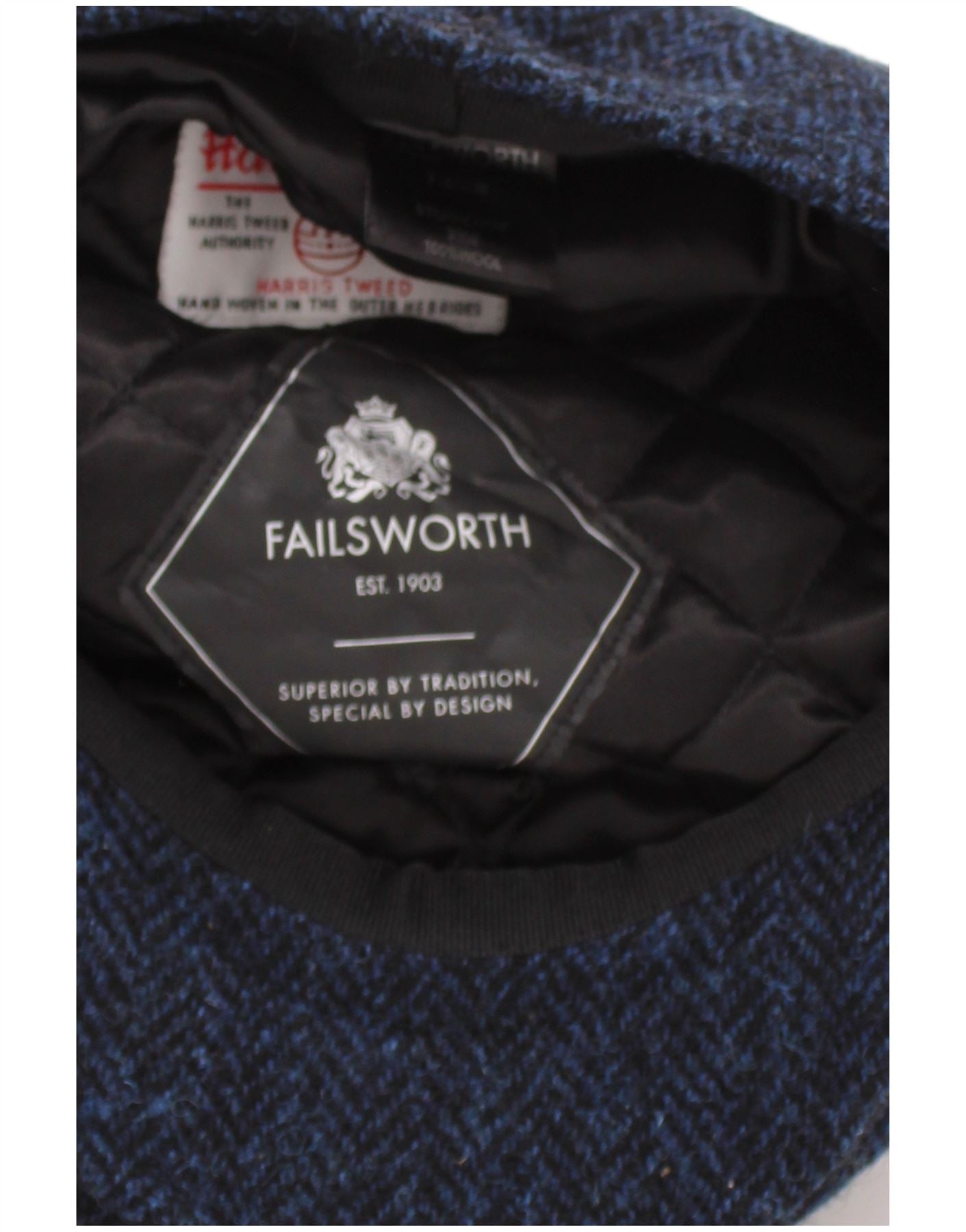 FAILSWORTH Mens Harris Tweed Geometrical Flat Cap Medium Navy Blue Classic