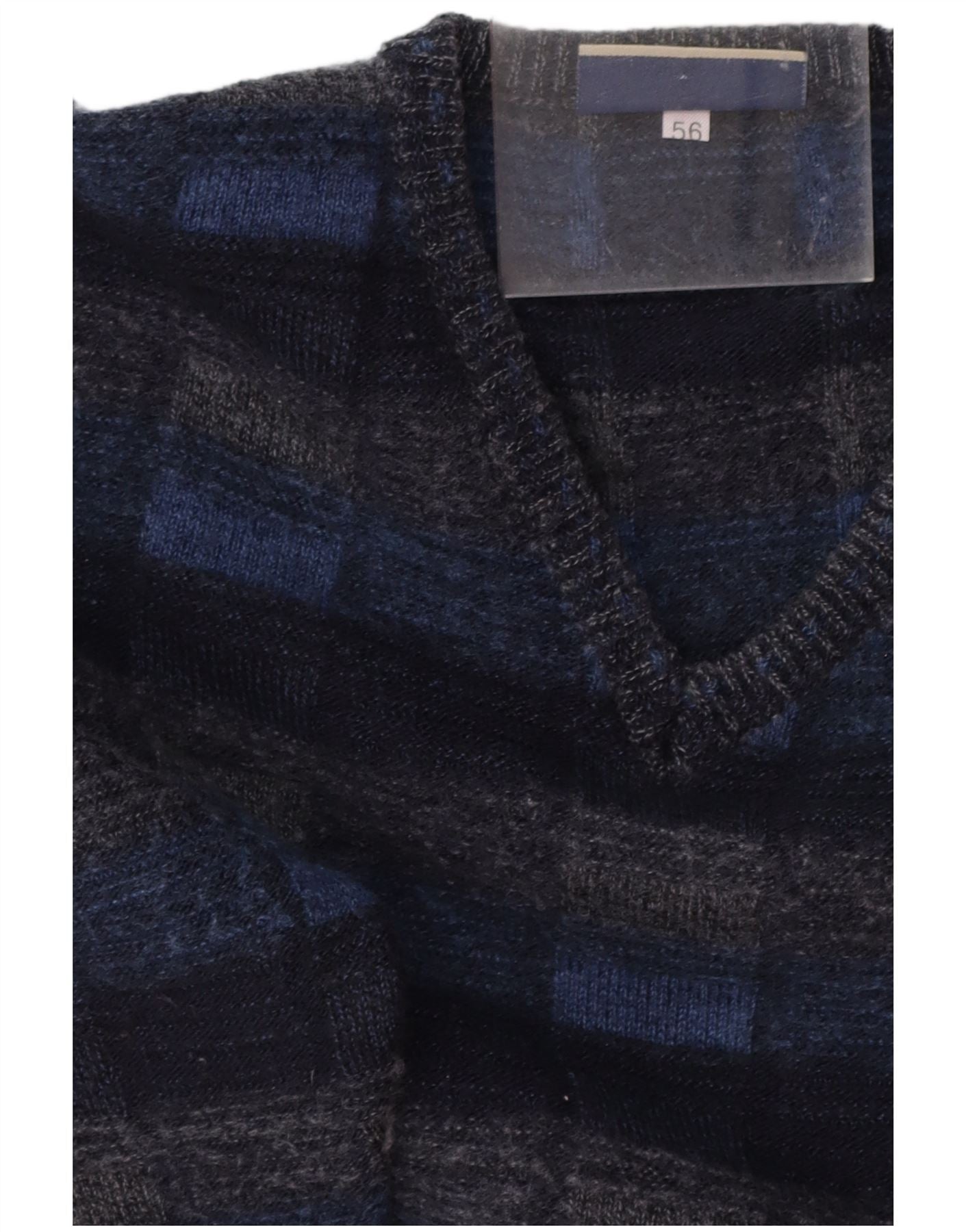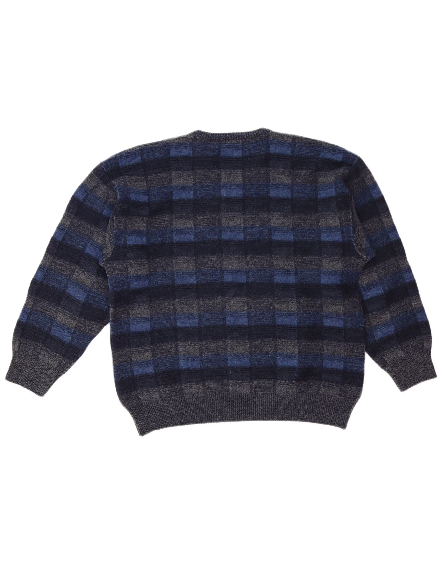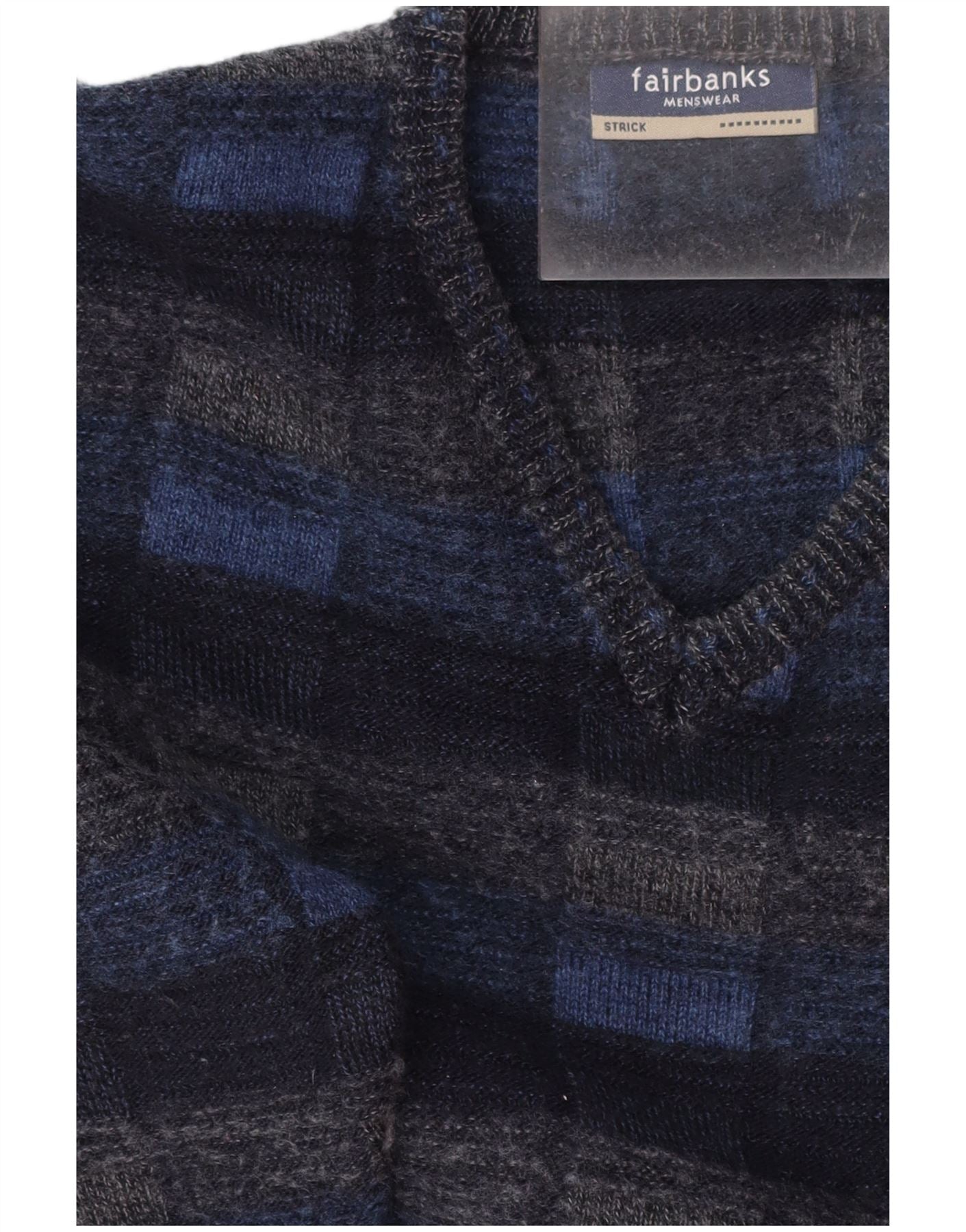 FAIRBANKS Herren-Pullover mit V-Ausschnitt IT 56 XL Marineblau karierte Schurwolle