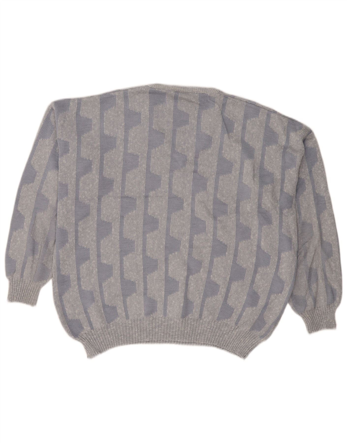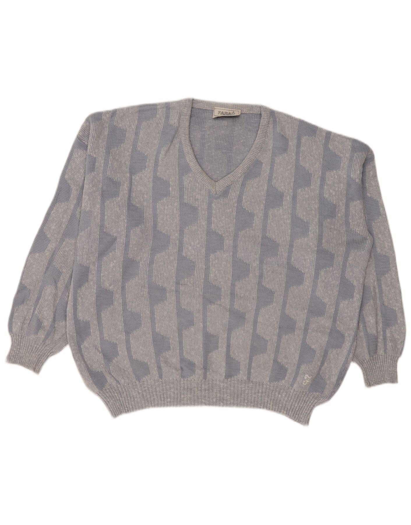 Farah Herren-Pullover mit V-Ausschnitt, Gr. 42, großes blaues geometrisches Acryl