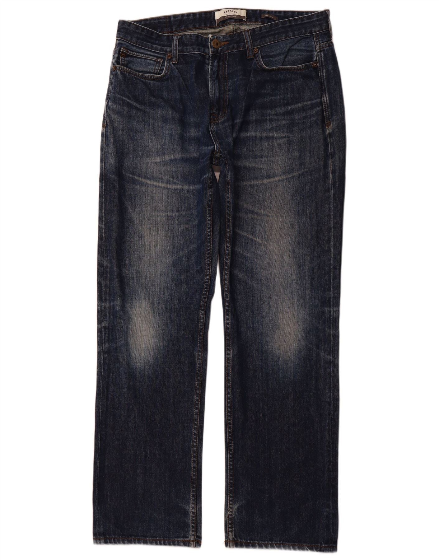 FAT FACE Herren Acid Wash Regular Fit Straight Jeans W36 L31 Blaue Baumwolle