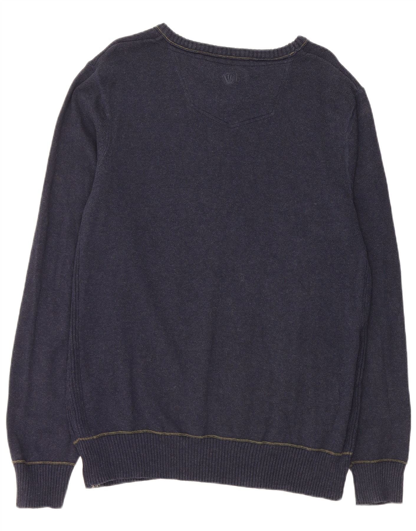 FAT FACE Herren-Pullover mit U-Boot-Ausschnitt, groß, marineblaue Baumwolle