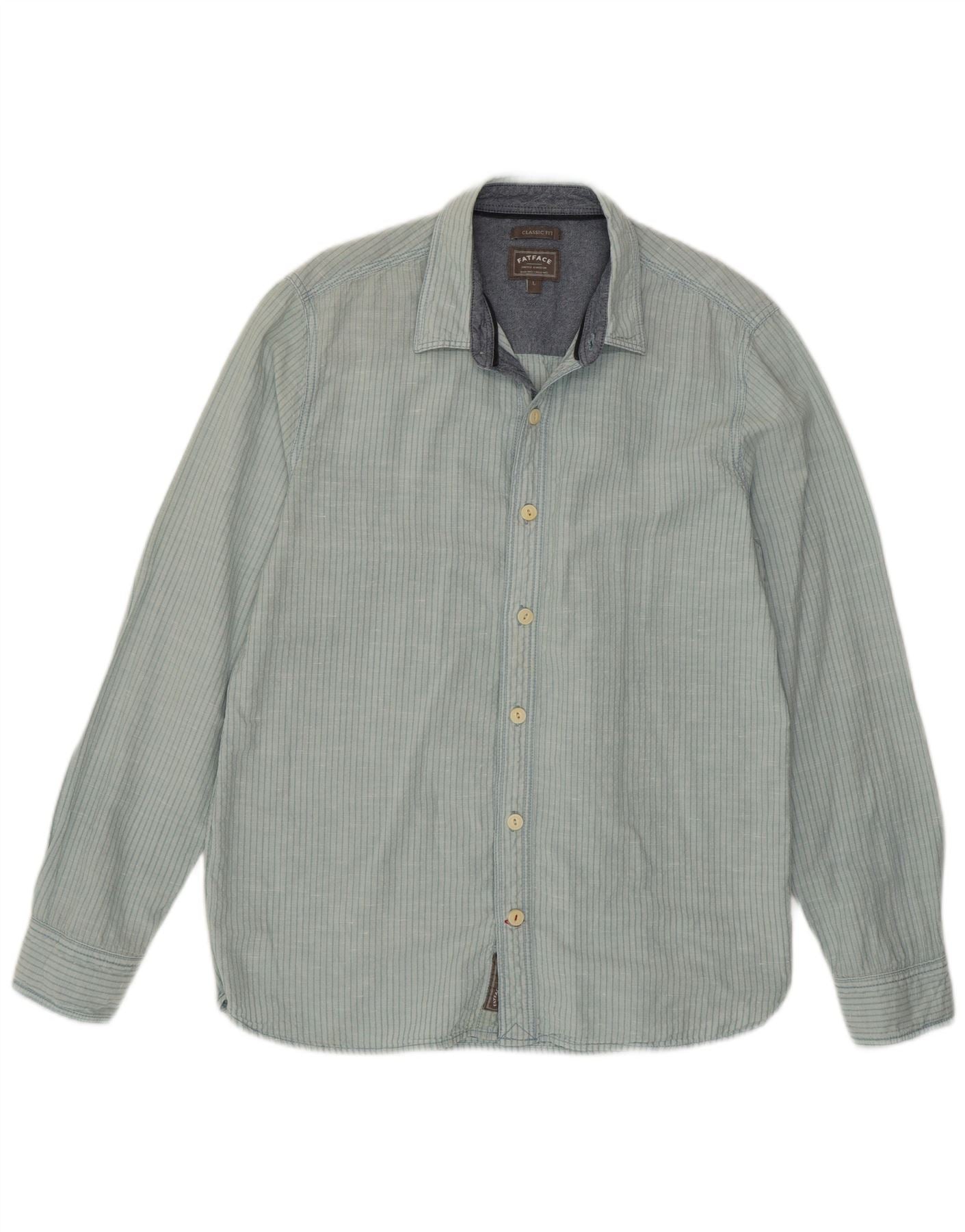 Fat Face Herren-Hemd mit klassischer Passform, großes, blau gestreiftes Leinen