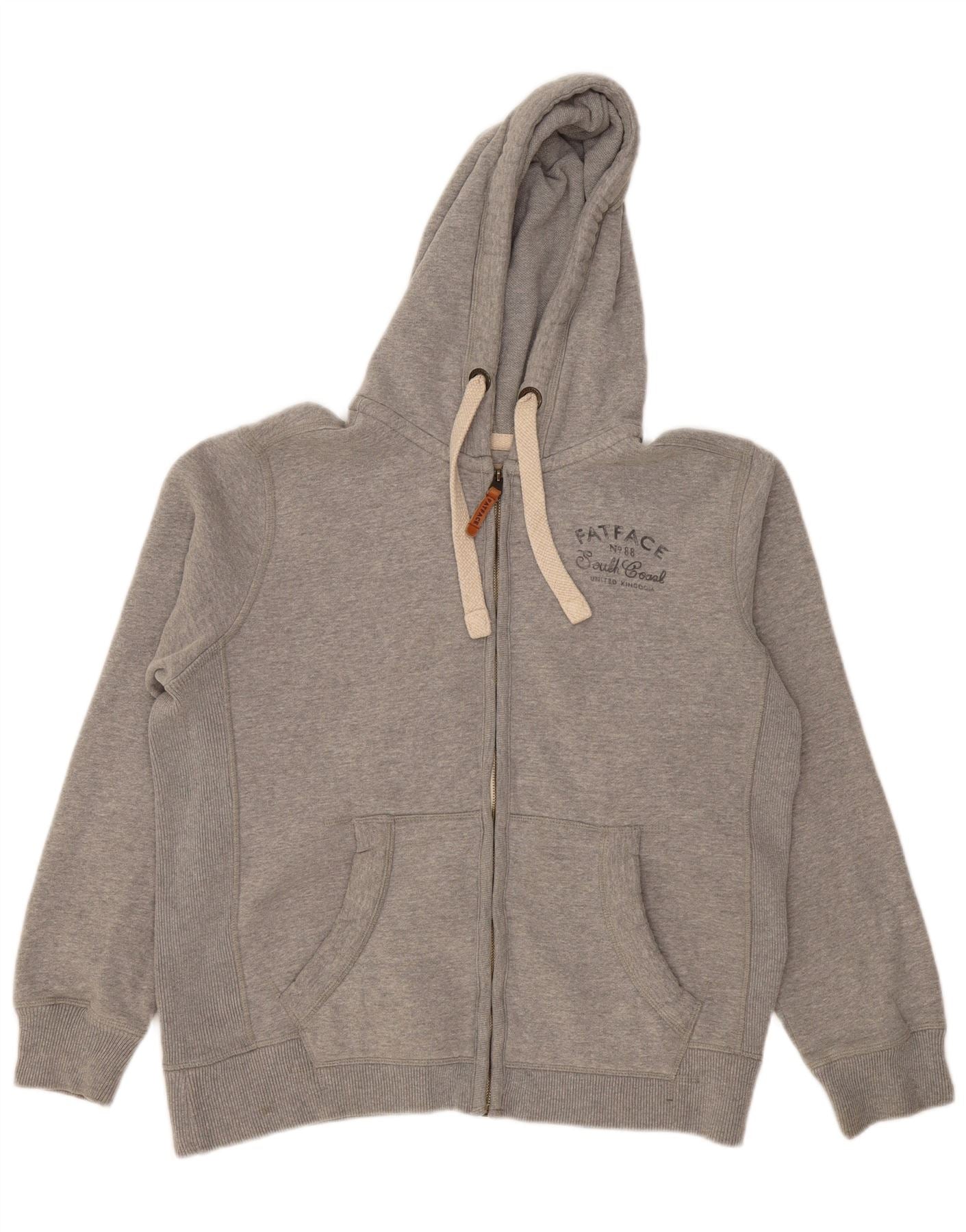 FAT FACE Herren-Kapuzenpullover mit grafischem Reißverschluss, groß, graue Baumwolle