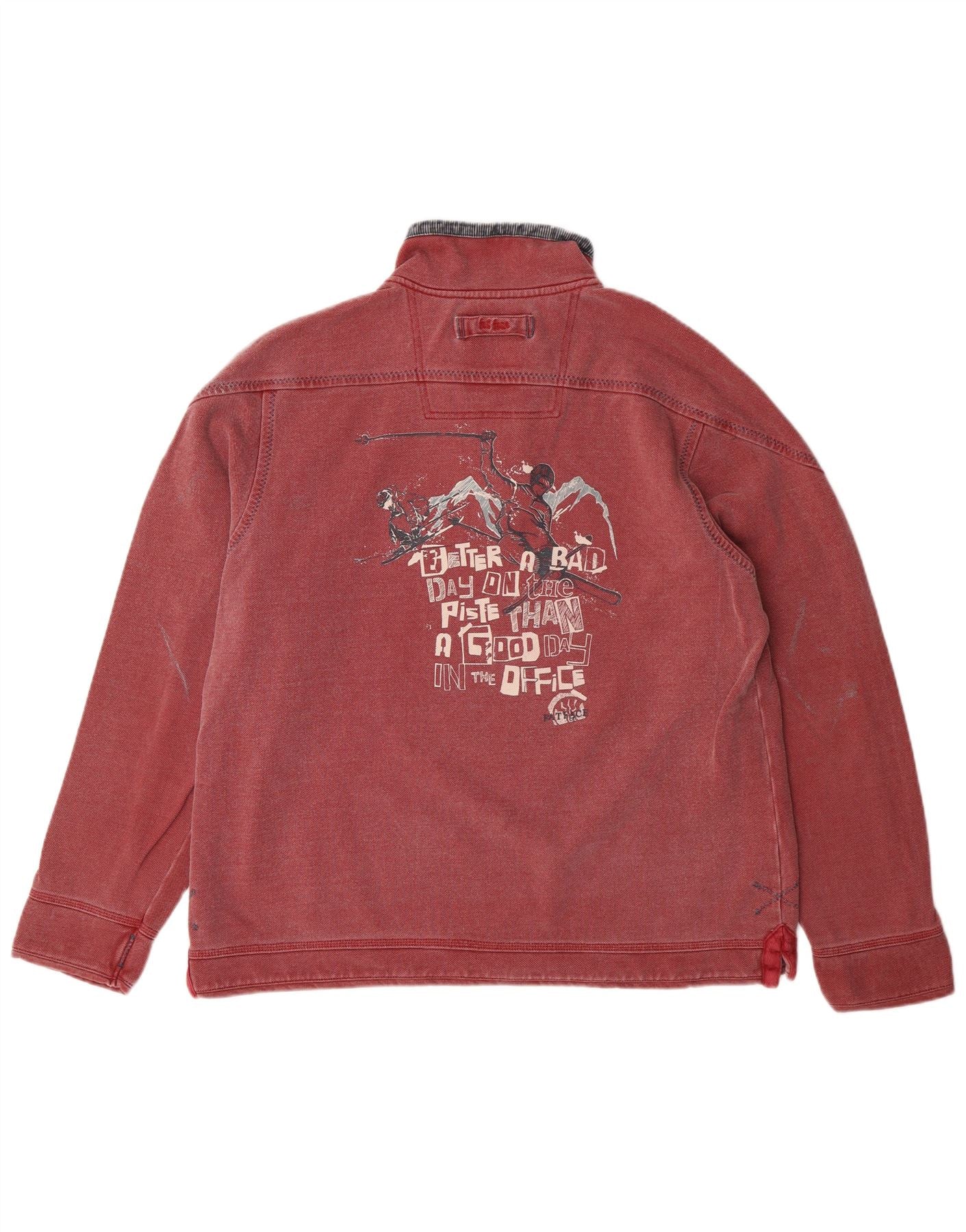 FAT FACE Herren-Sweatshirt mit grafischem Reißverschluss am Hals, mittelrote Baumwolle