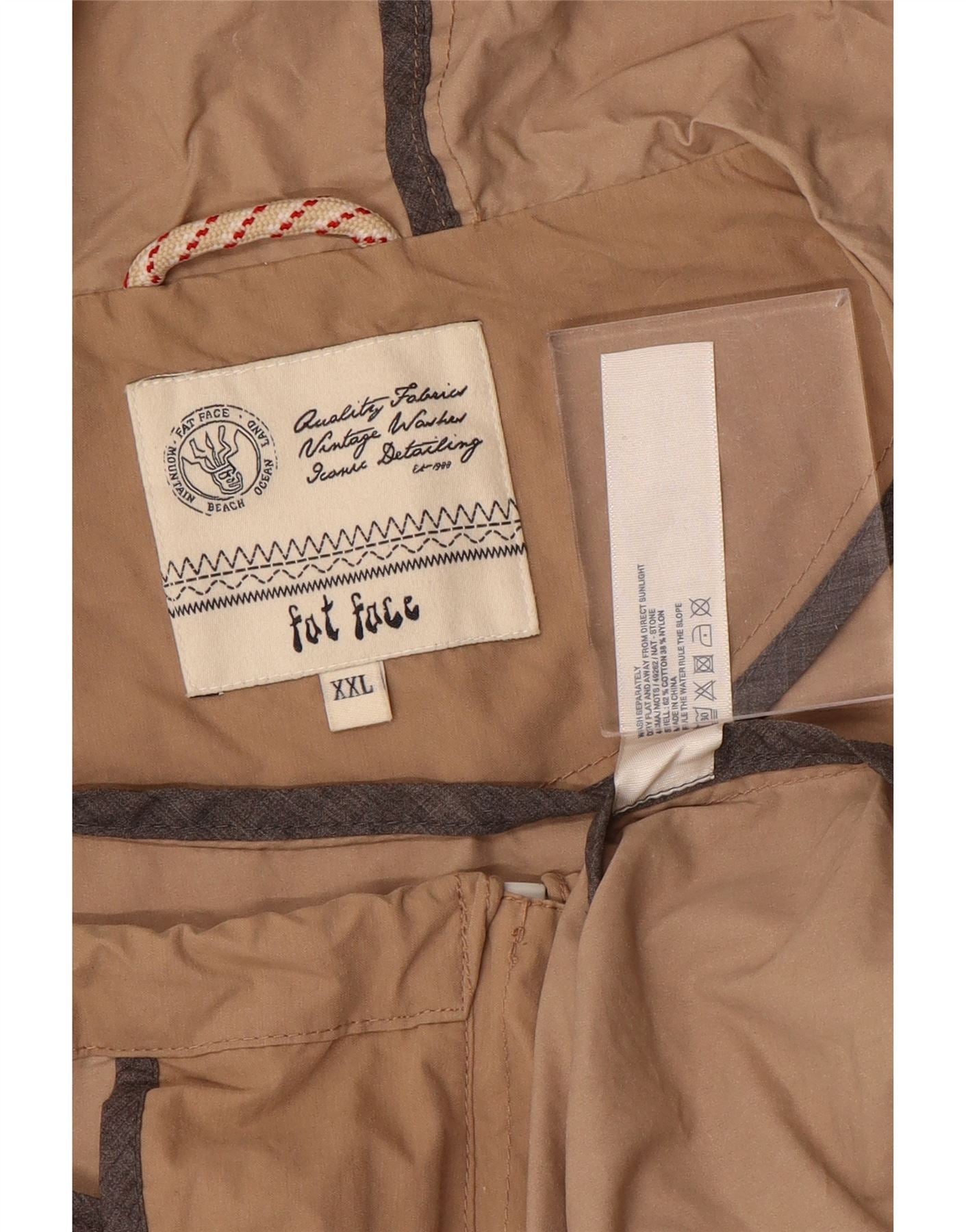 FAT FACE Herren-Windbreakerjacke mit Kapuze, UK 44, 2XL, beige Baumwolle