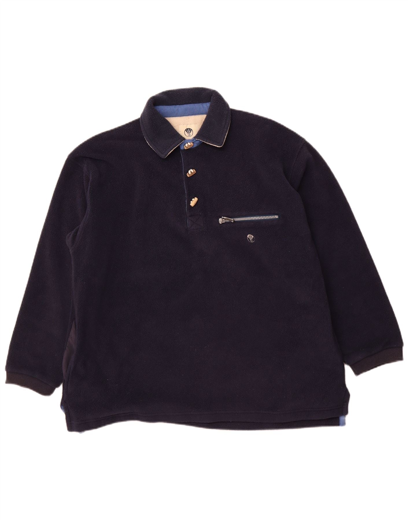 FAT FACE Herren-Fleecepullover mit Polokragen, mittelblaues Polyester