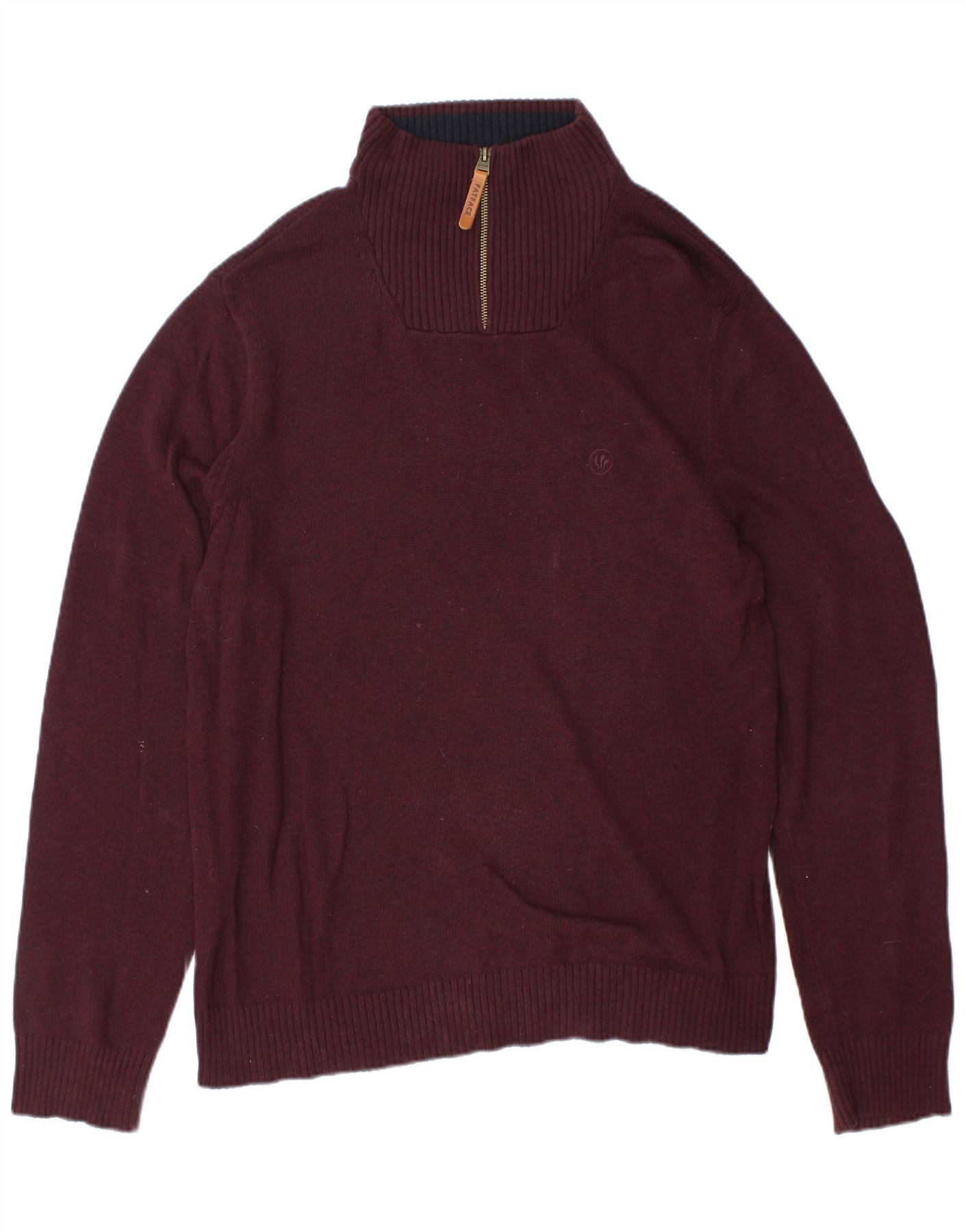 FAT FACE Herren-Pullover mit Reißverschluss am Hals, große Baumwolle, Burgunderrot
