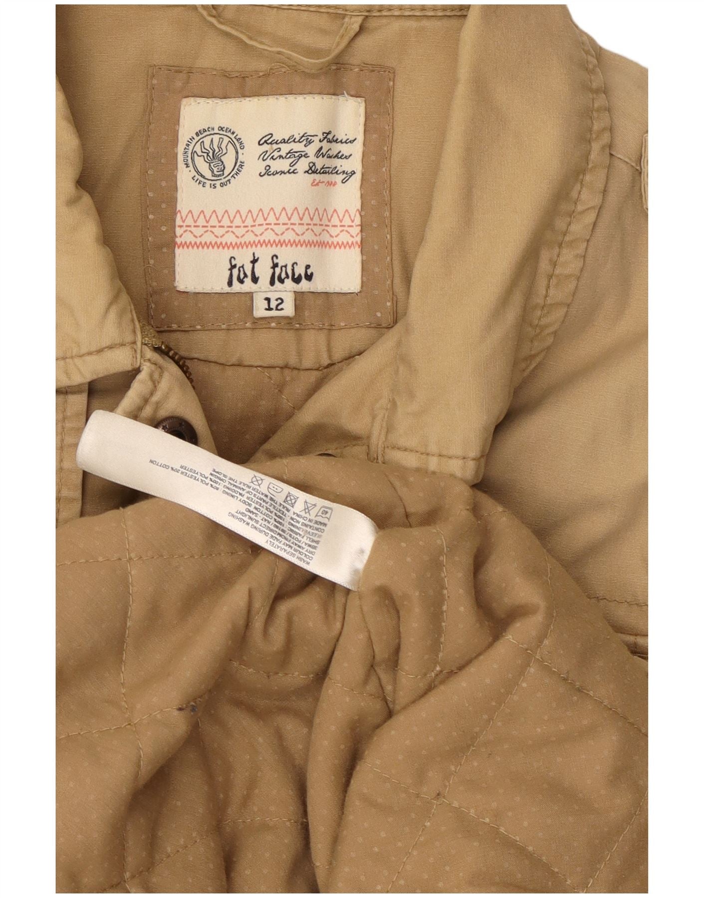 Fat Face Damen-Militärjacke, UK 12, mittelbeige Baumwolle