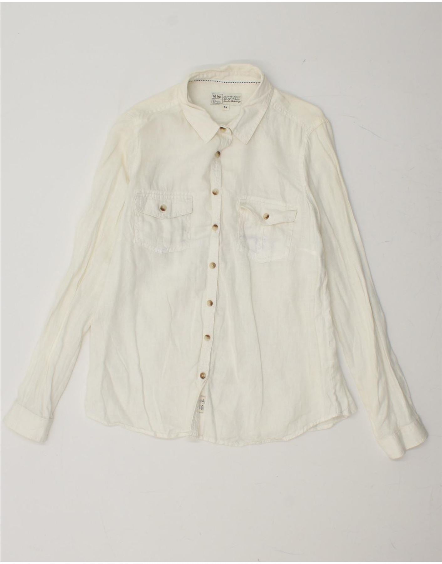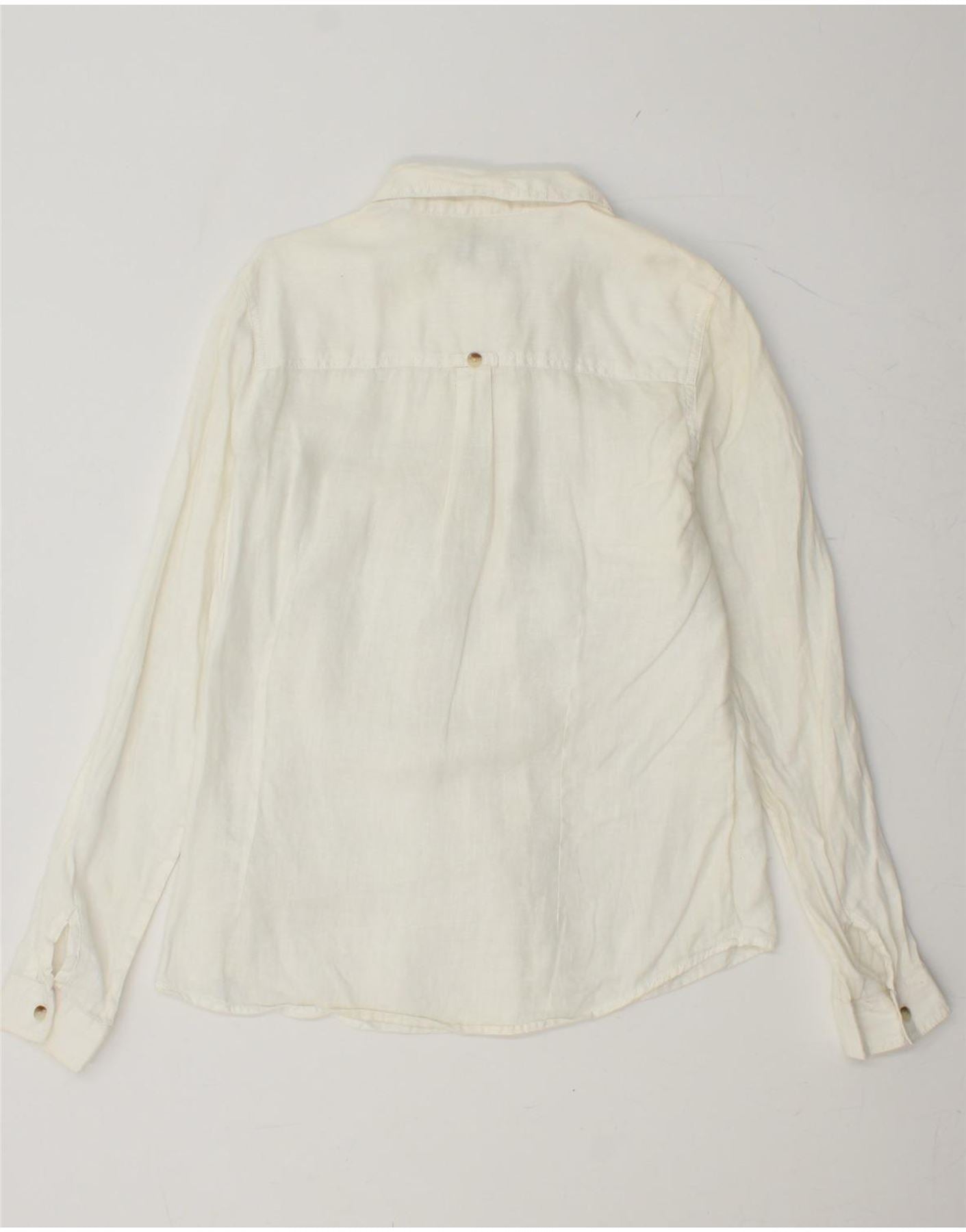 FAT FACE Damen-Hemd UK 14 Medium aus weißem Leinen