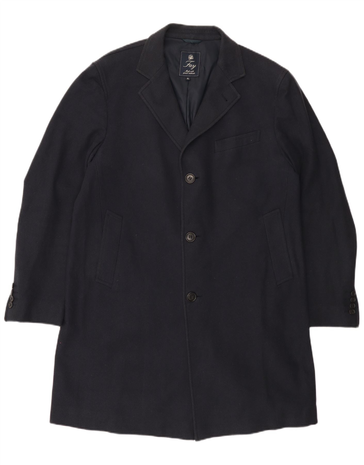 FAY Damenmantel UK 18 XL Marineblaue Herringbone-Baumwolle