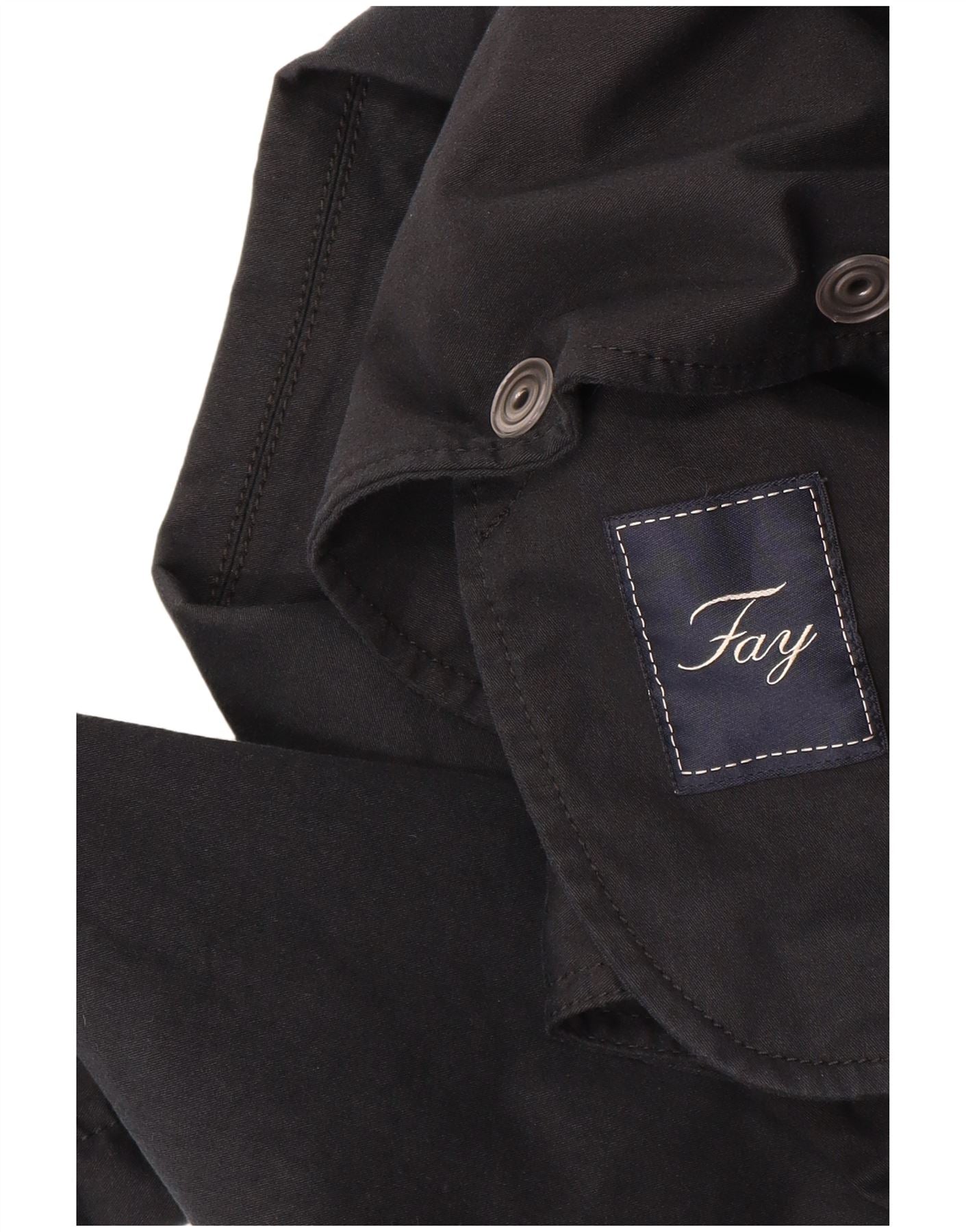 - AI Description: This Fay womens Utility Jacket is crafted from a sturdy black woven fabric, offering a structured yet comfortable feel. It features a classic collared neckline and a full button-up front, providing a smart silhouette. Long sleeves and a regular fit ensure ease of movement. Practical zipped pockets and button accents add functional detail and a subtle military-inspired aesthetic. This jacket blends classic style with everyday utility.