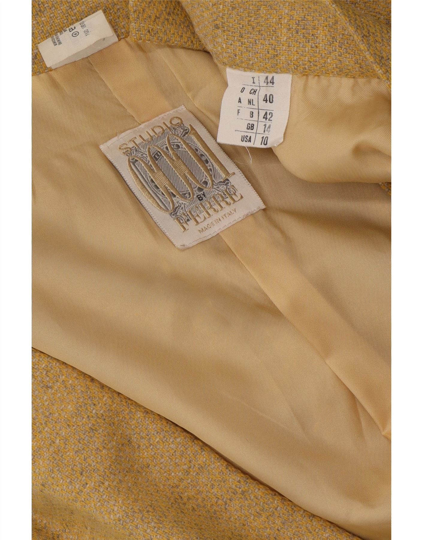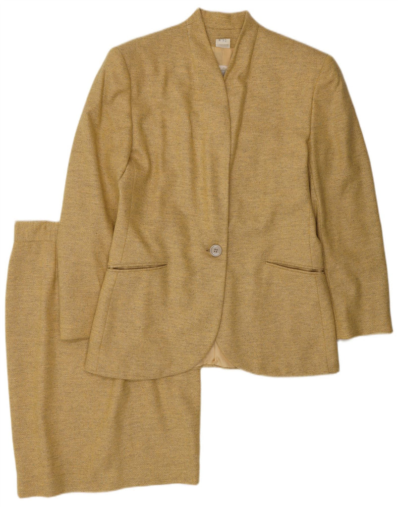 FERRE Womens 1 Button 2 Piece Skirt Set UK 14 Medium W28 Yellow Wool