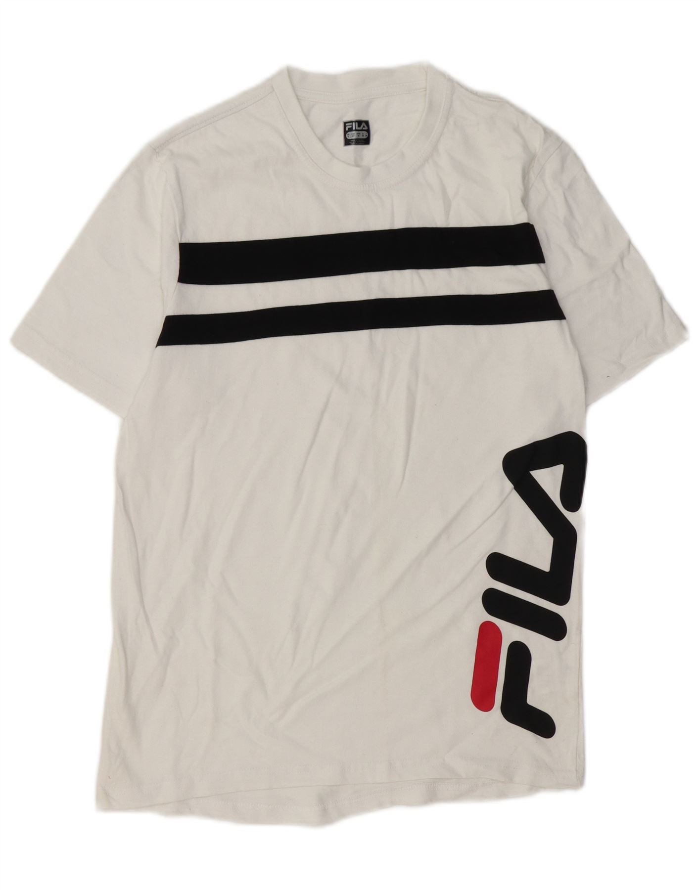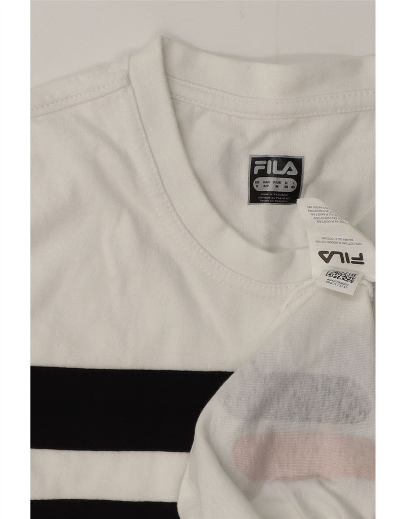 FILA Herren Grafik-T-Shirt-Oberteil aus mittelweiß gestreifter Baumwolle