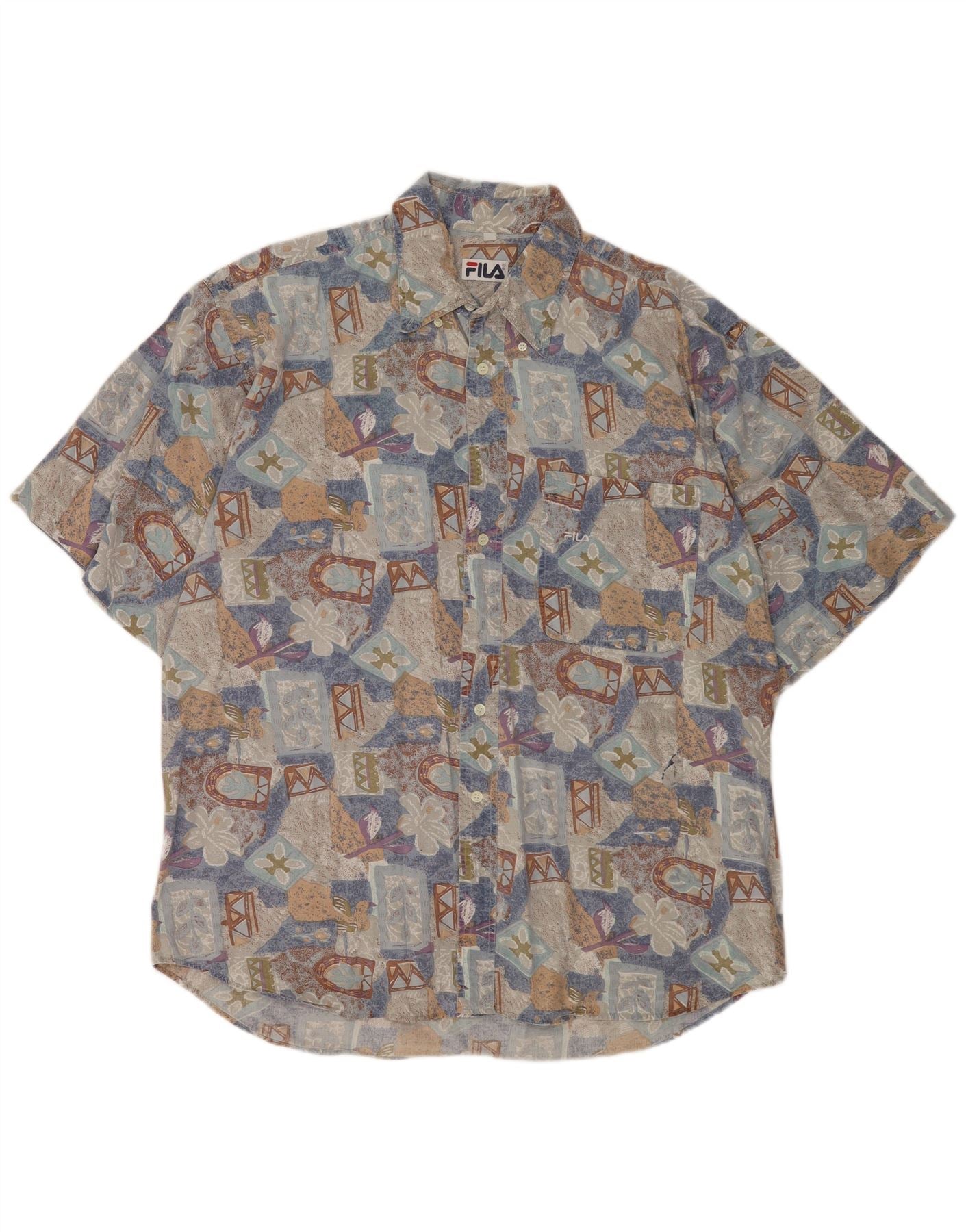 FILA Herren-Kurzarmhemd 2XL aus mehrfarbiger Blumen-Baumwolle