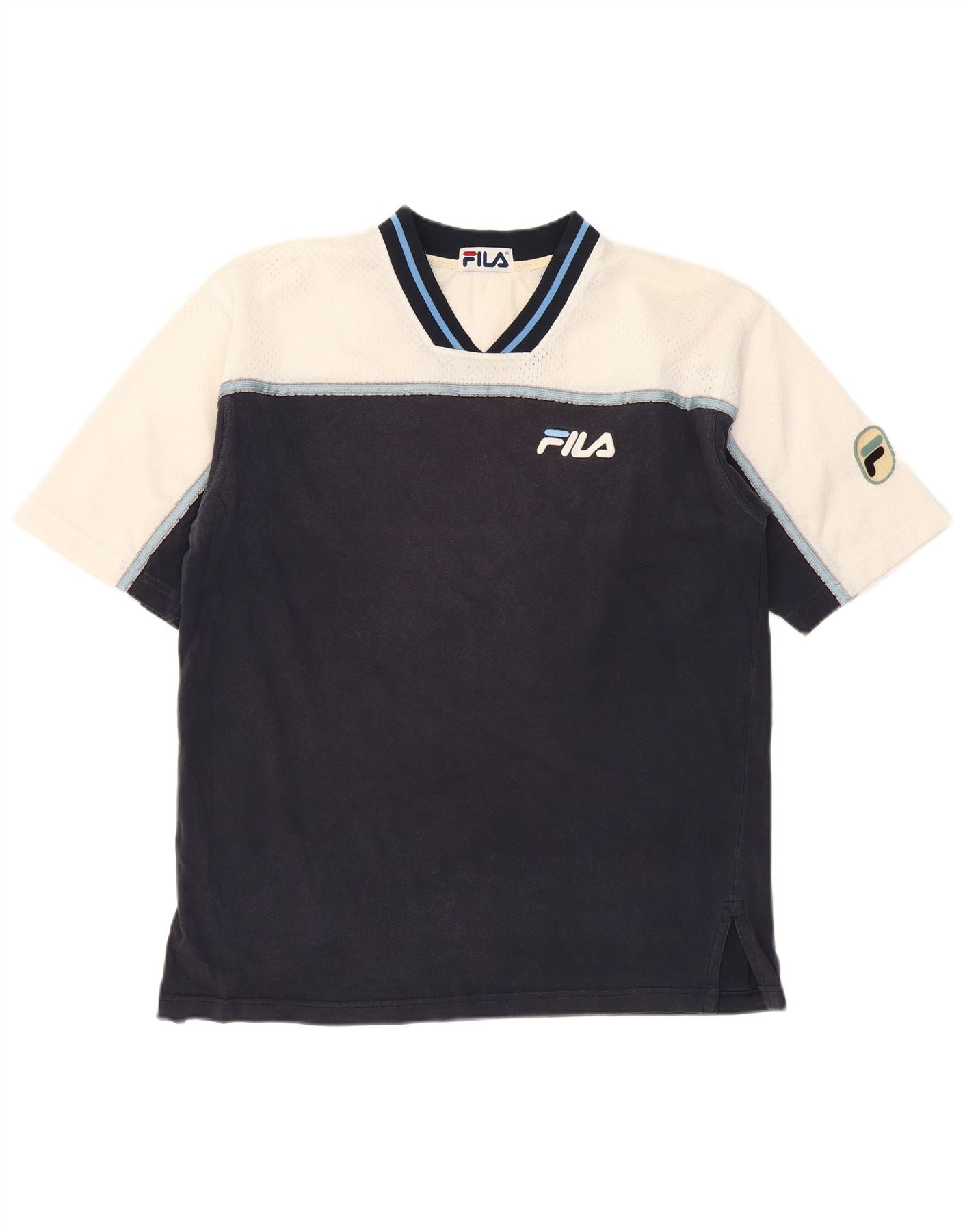 FILA Herren T-Shirt Top Small Marineblau Colourblock Baumwolle