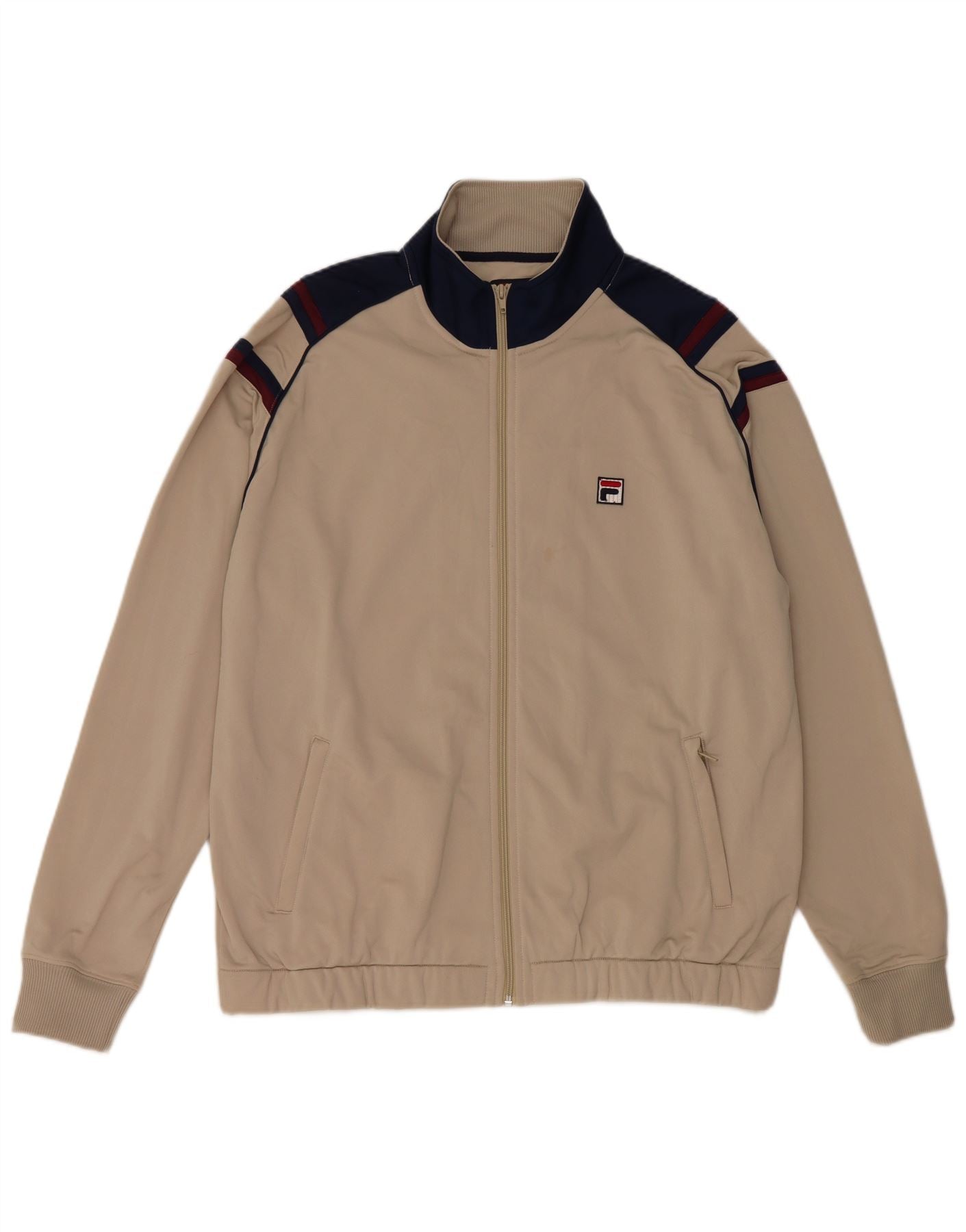 FILA Herren-Trainingsanzug-Oberteil, Jacke, groß, Beige, Farbblock-Polyester