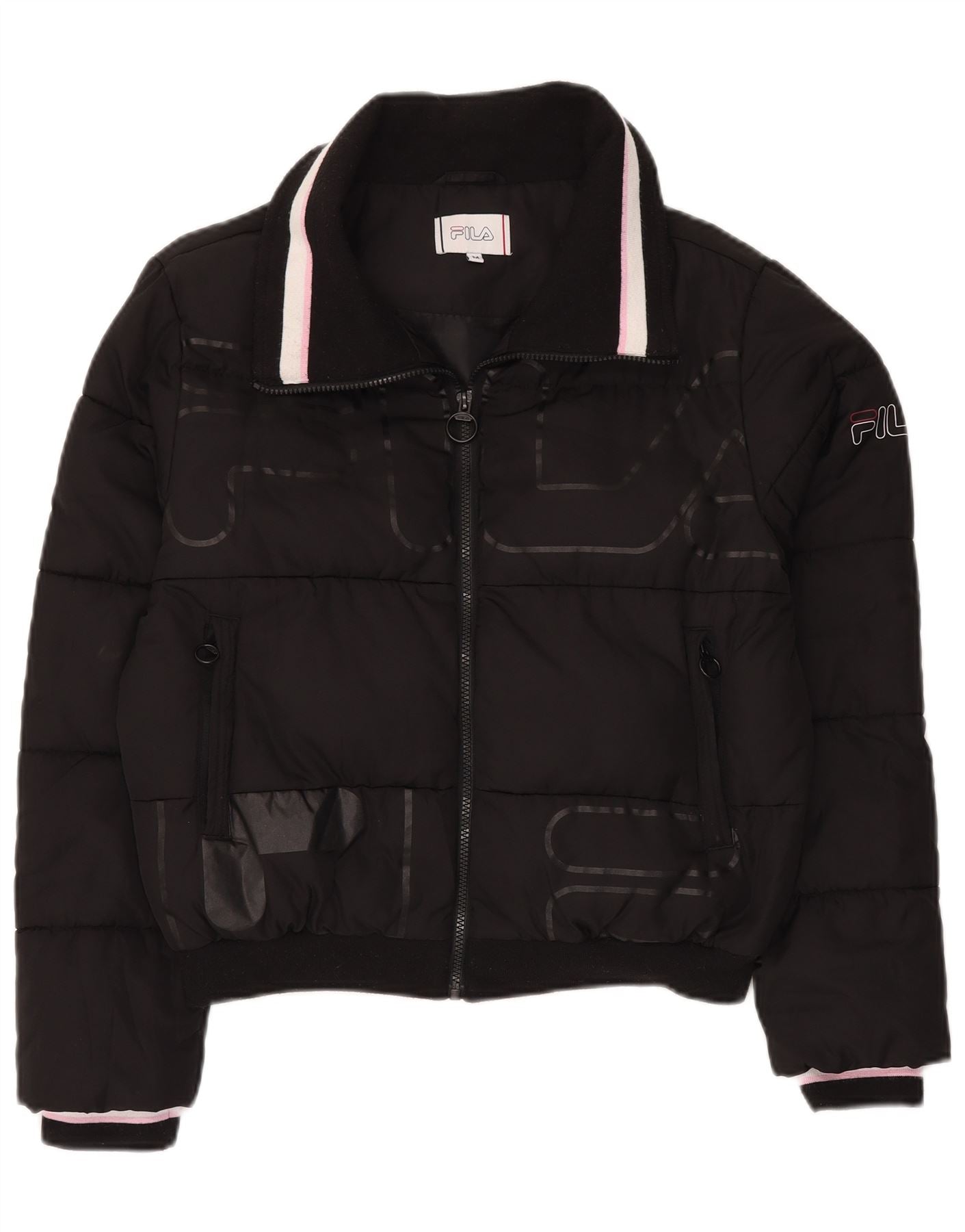 FILA Womens Graphic Wattierte Jacke UK 14 Mittelschwarzes Polyester