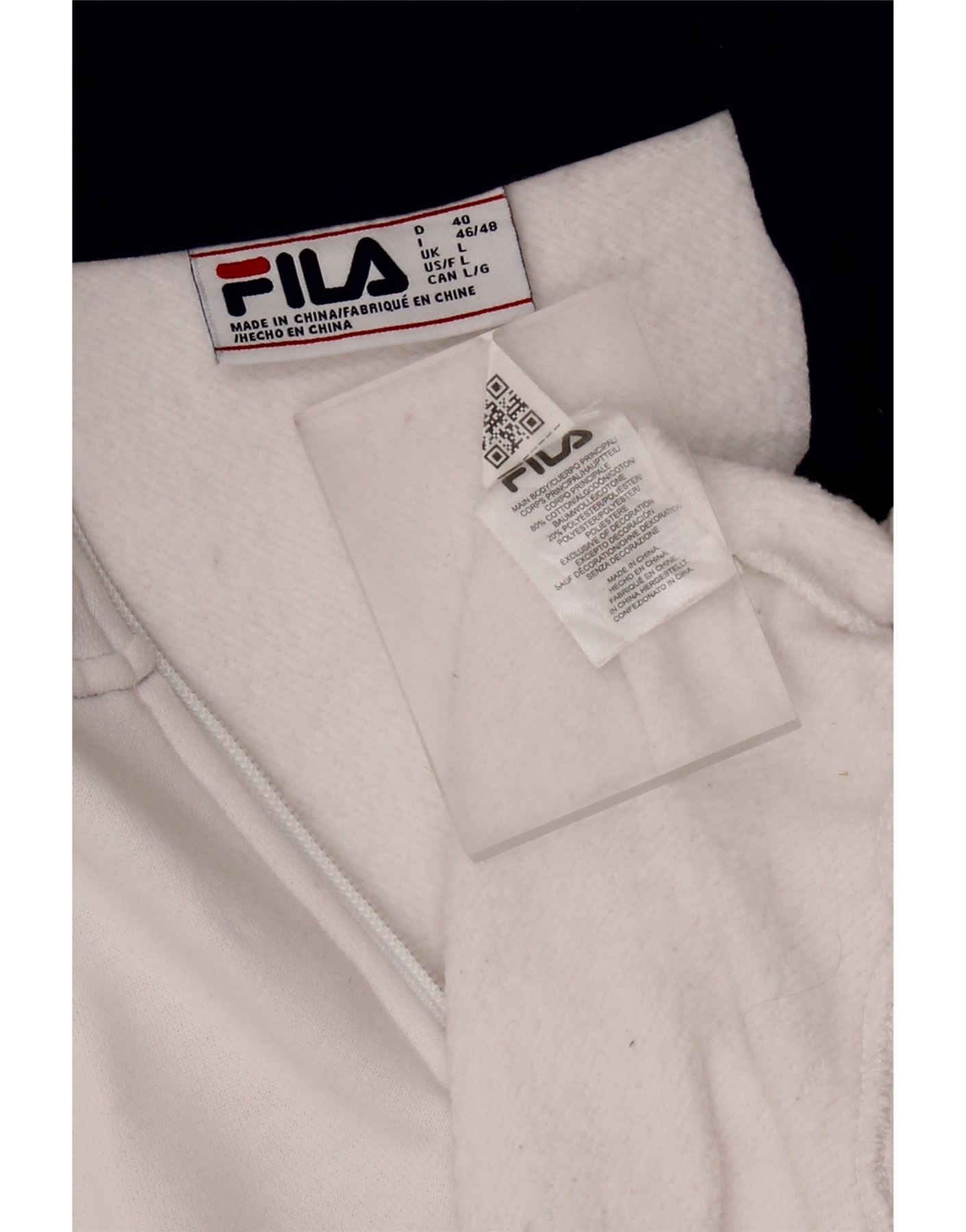 FILA Damen-Sweatshirt mit grafischem Reißverschluss am Hals, UK 16, Größe L, weiße Baumwolle