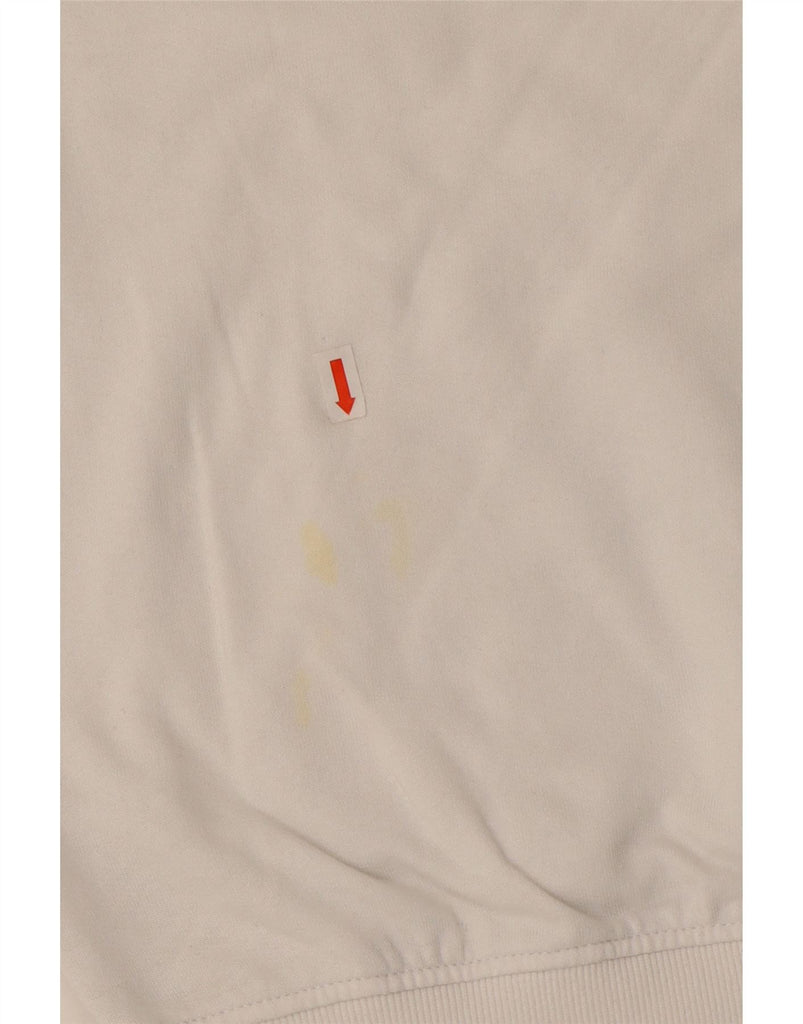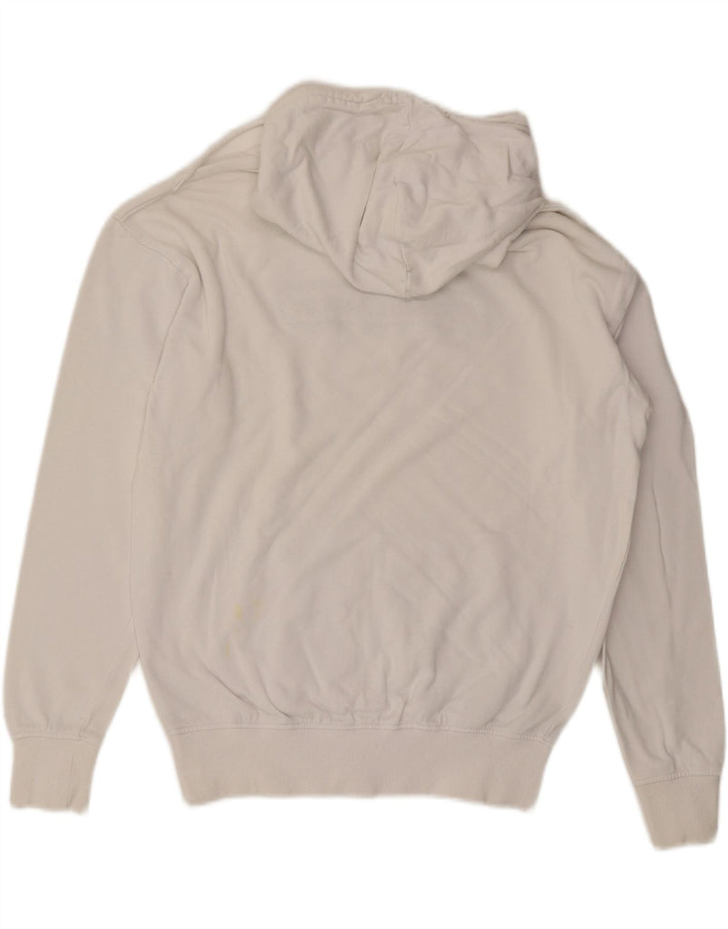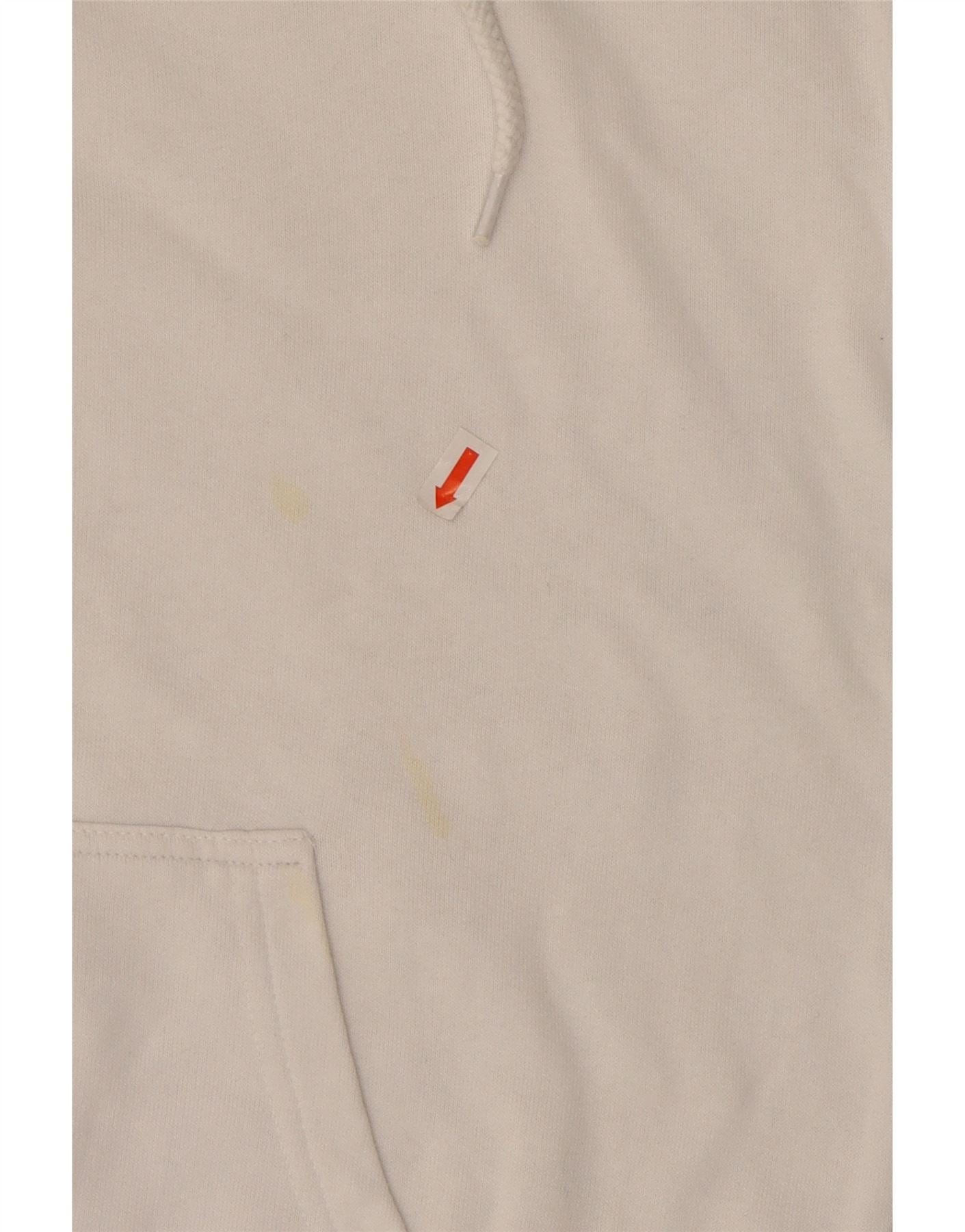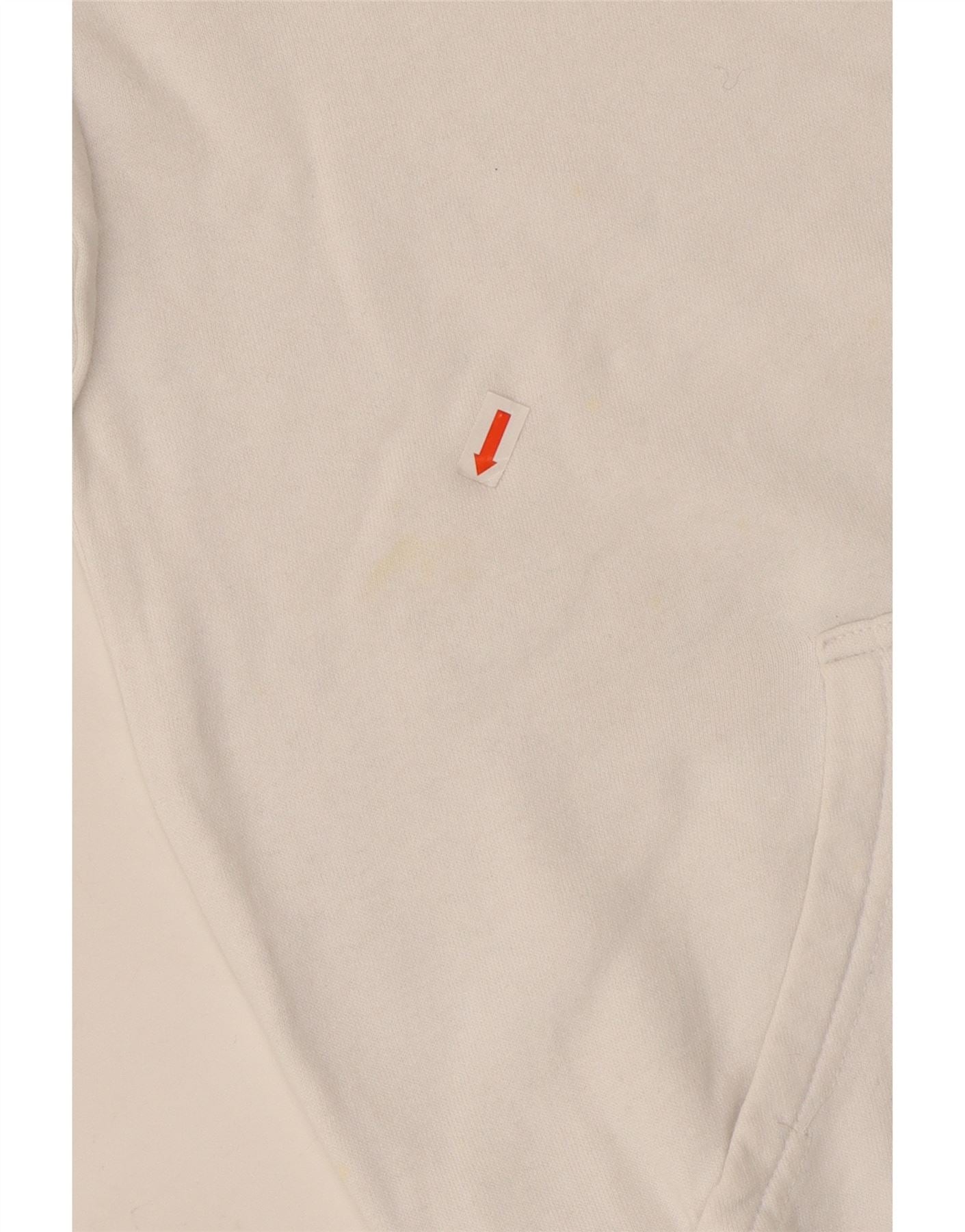 - AI Condition: Pre-owned | grade: Moderate | location: Lower back of the garment | type: Stains | grade: Minor | location: Lower front of the garment, right side, above the pocket | type: Stains | grade: Minor | location: Lower front of the garment, left side, above the pocket | type: Stains | grade: Moderate | location: General fabric wear, pilling, and slight dullness throughout the garment, especially noticeable on cuffs, hem, and hood edges | type: Visible wear | grade: Minor | location: Slight yellowing/dullness around the hood opening | type: Discoloration