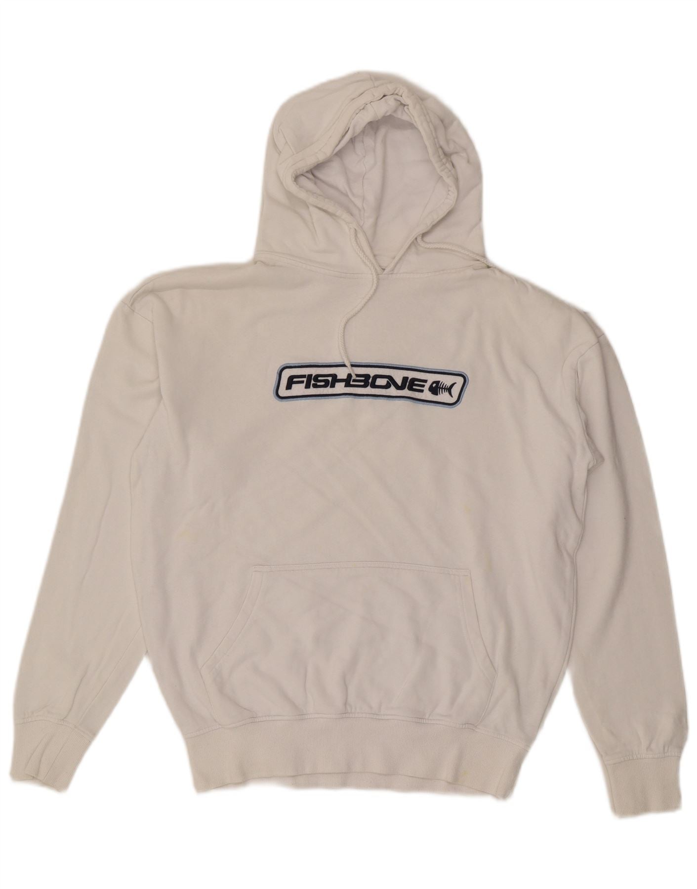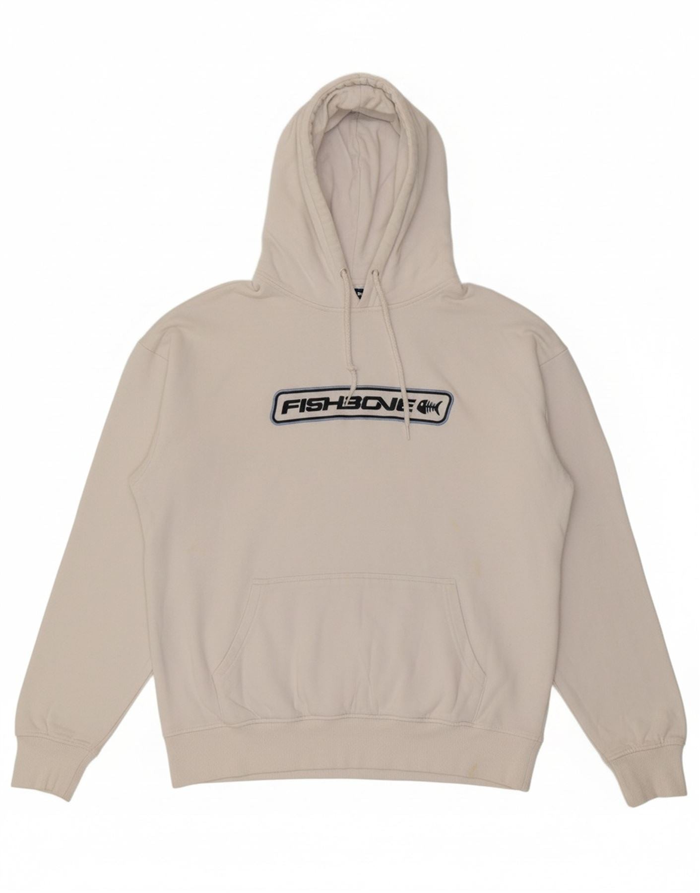 - AI Description: This Fishbone mens Hoodie Jumper comes in a versatile off white shade. It is crafted from a soft knit fabric, offering comfort and warmth. The pullover design features a classic hooded neckline and long sleeves. A regular fit ensures ease of wear. It includes practical pockets and a distinctive graphic logo detail. The round neck completes the modern style.