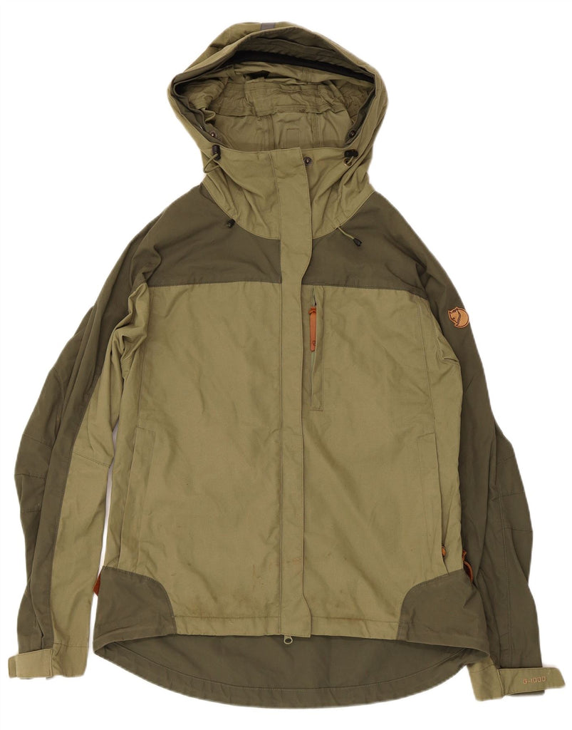 FJALL RAVEN Womens Oversized Rain Jacket UK 10 Small Khaki Colourblock