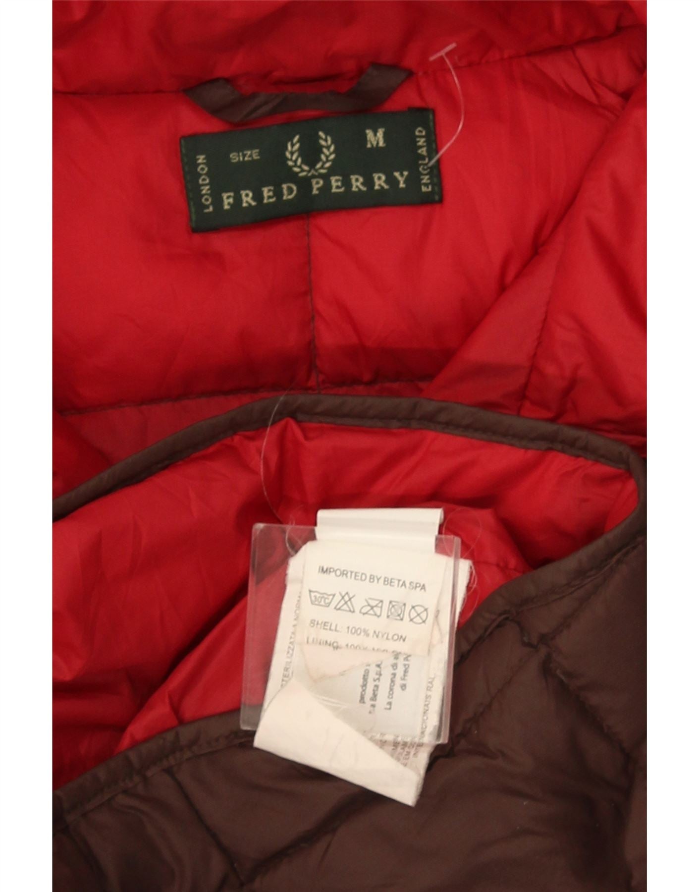 Fred Perry Herren-Jacke mit Kapuze, gepolstert, UK 38, mittelbraunes Nylon