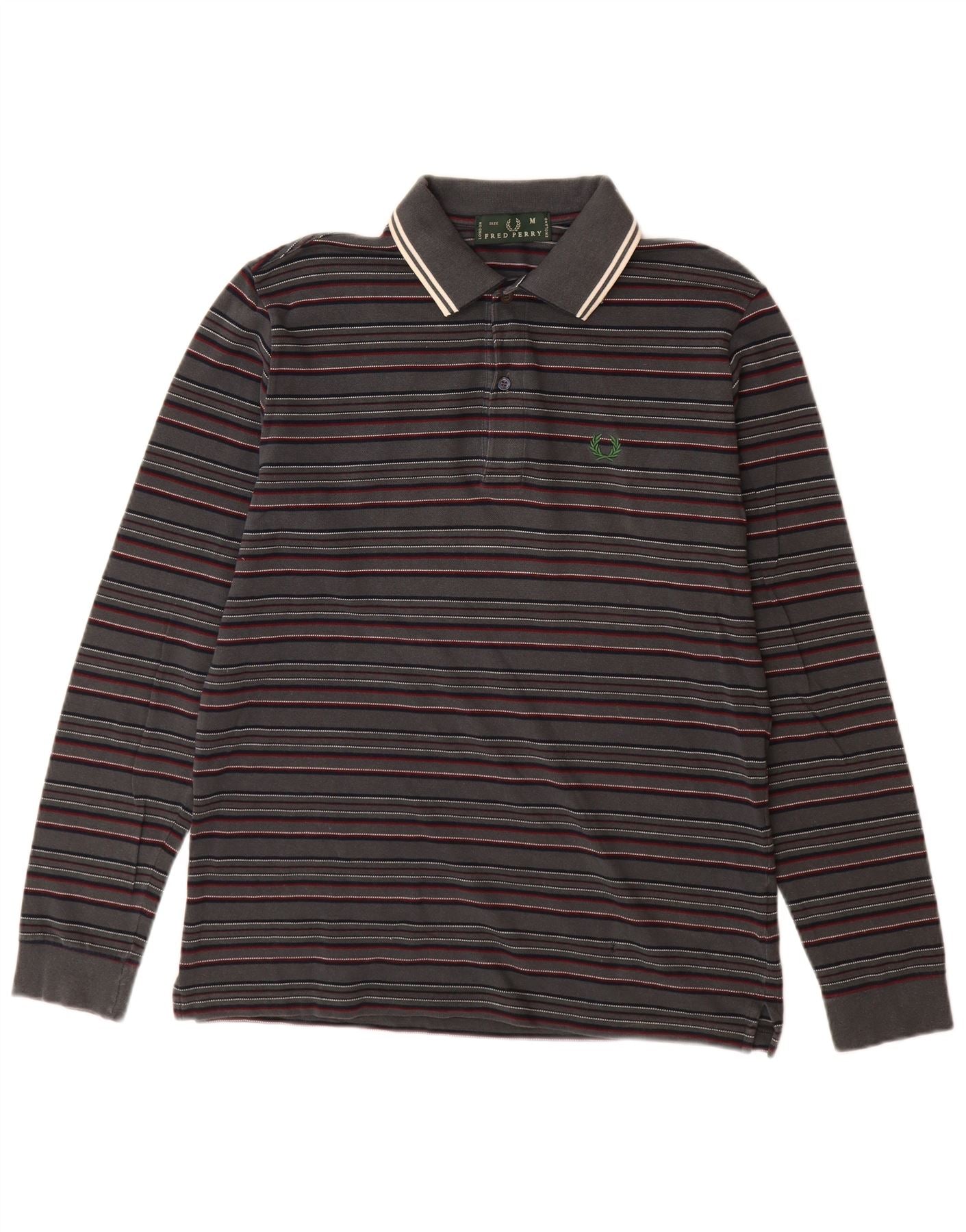 FRED PERRY Herren-Langarm-Poloshirt aus mittelgrau gestreifter Baumwolle