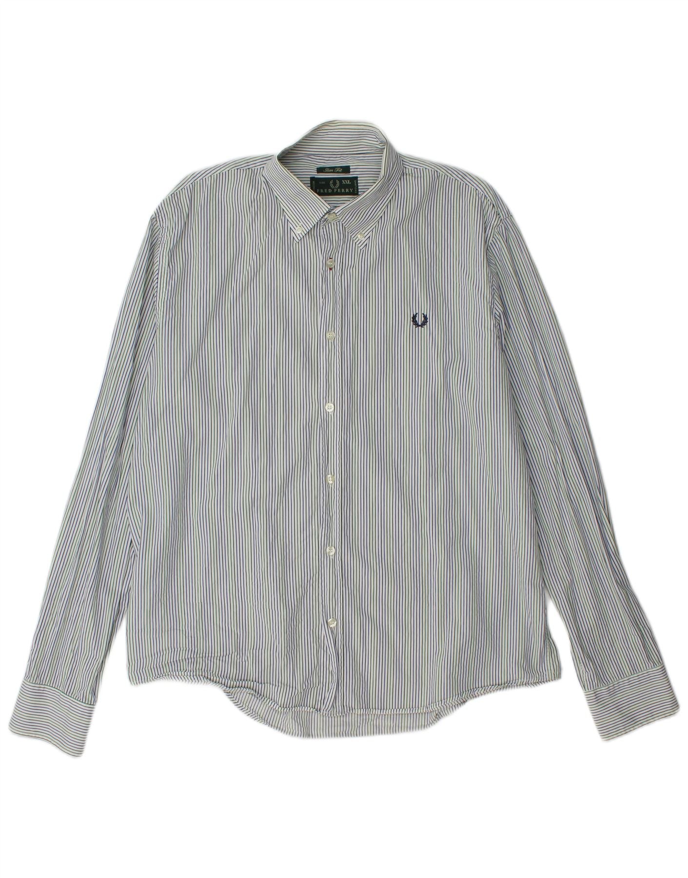 FRED PERRY Herren-Slim-Fit-Hemd 2XL, blaue Nadelstreifen-Baumwolle