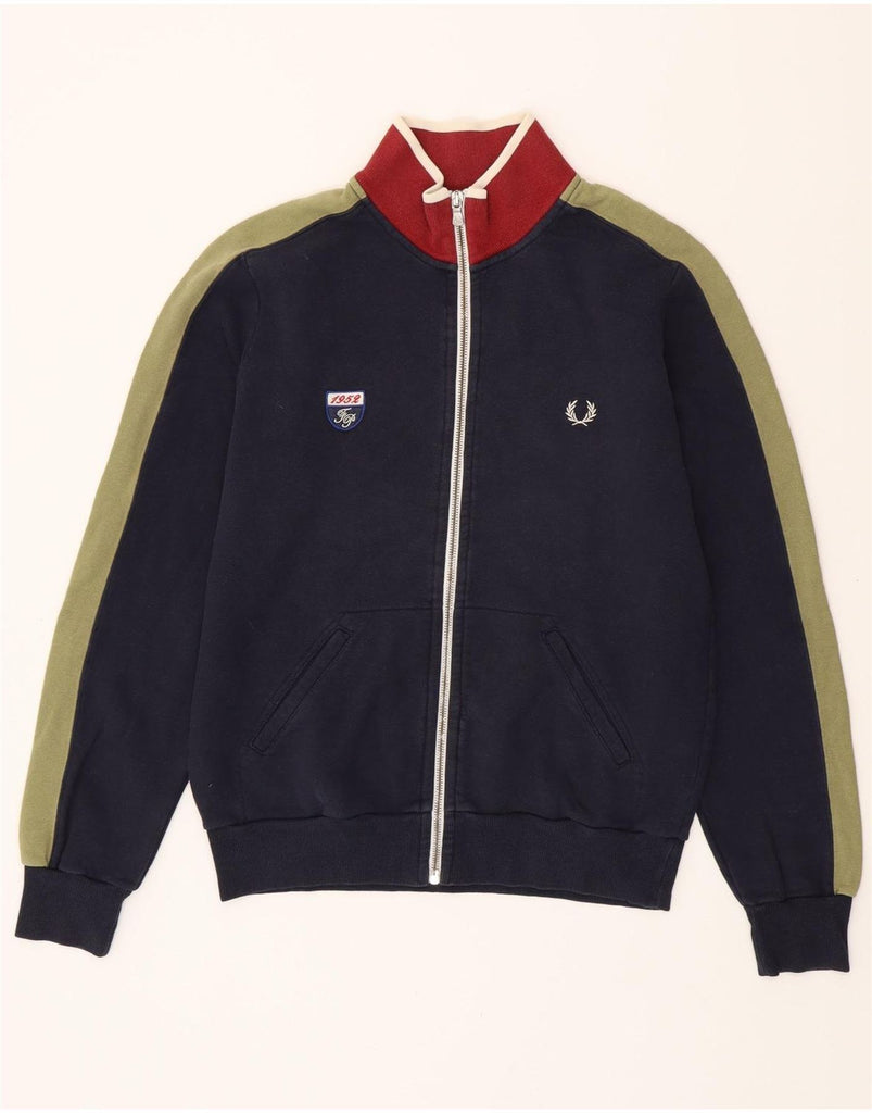 FRED PERRY Herren-Trainingsanzug-Oberteil, Jacke, klein, marineblau, Colourblock-Baumwolle