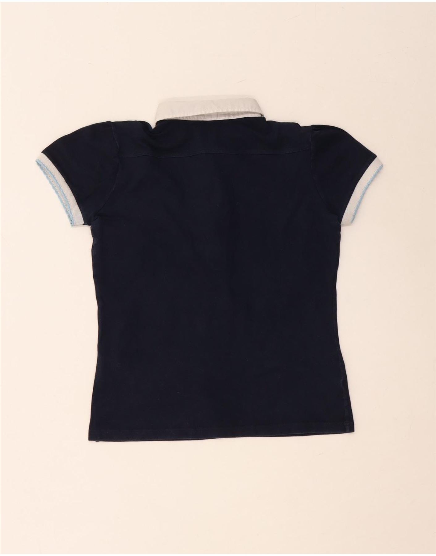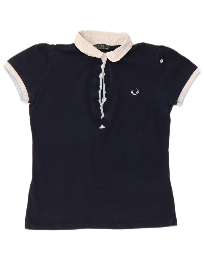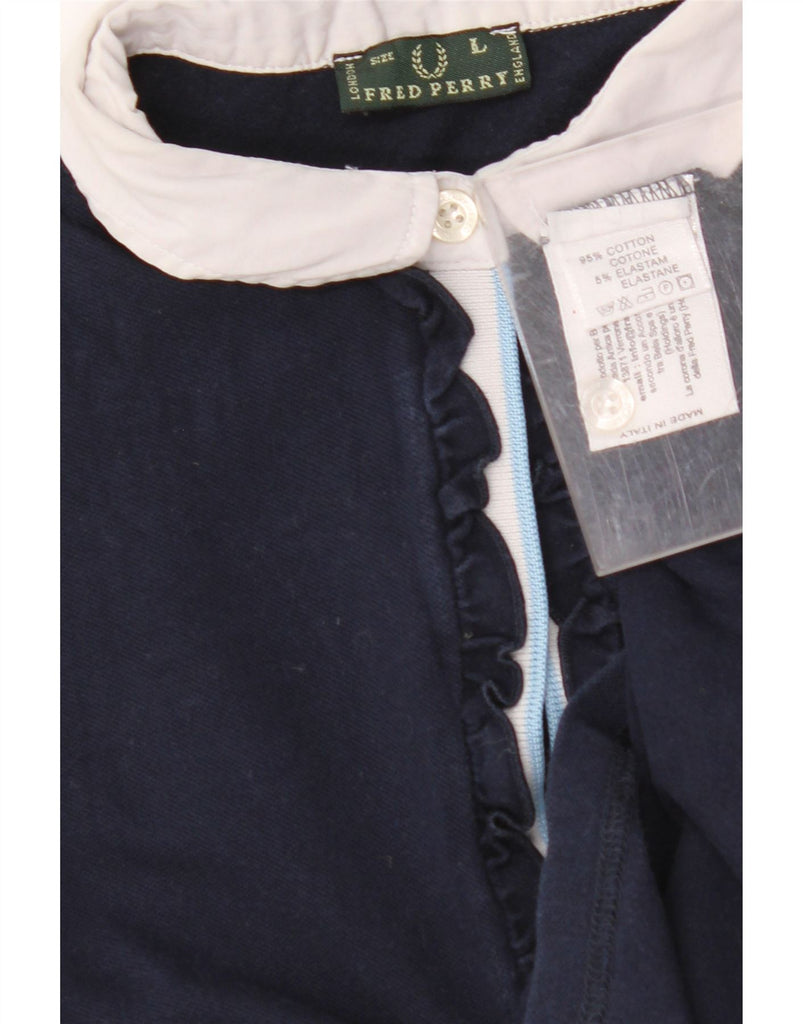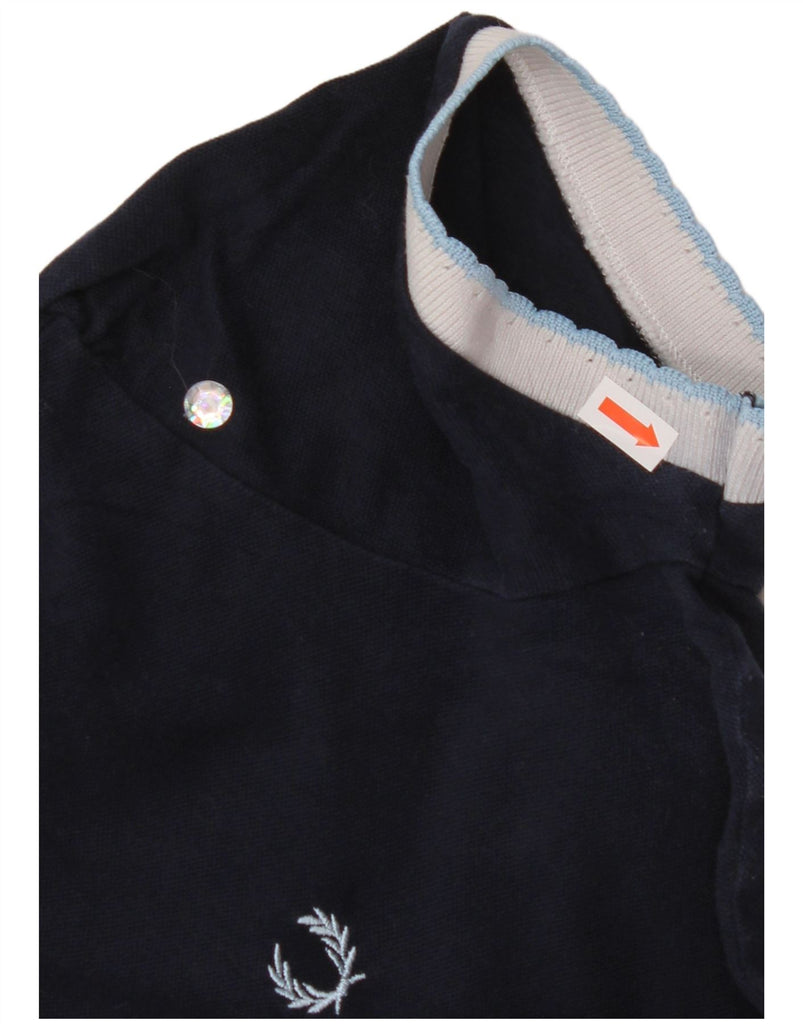 FRED PERRY Damen Crop Poloshirt UK 14 Große marineblaue Colourblock-Baumwolle