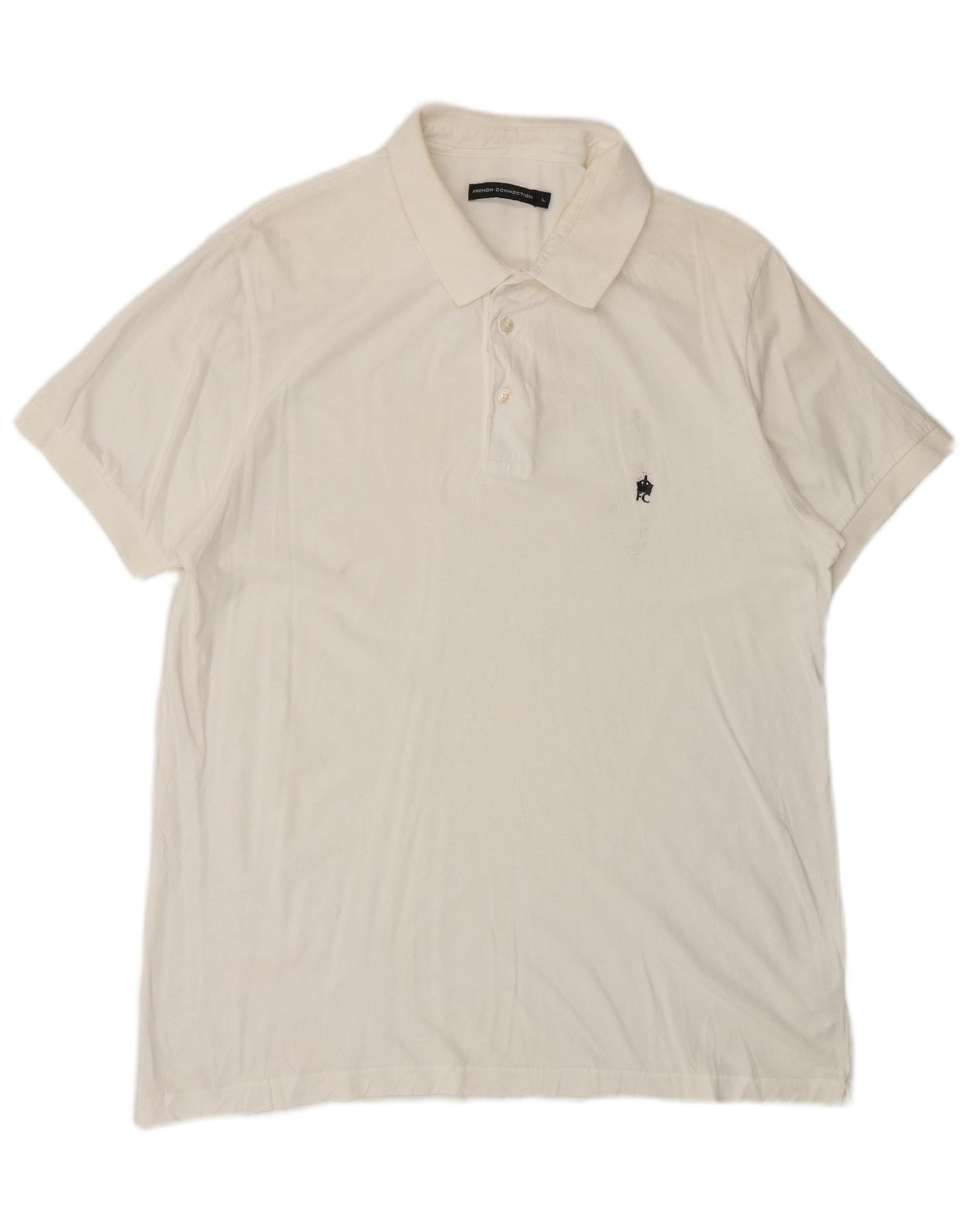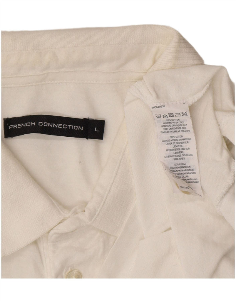 FRENCH CONNECTION Herren-Poloshirt, groß, cremefarbene Baumwolle