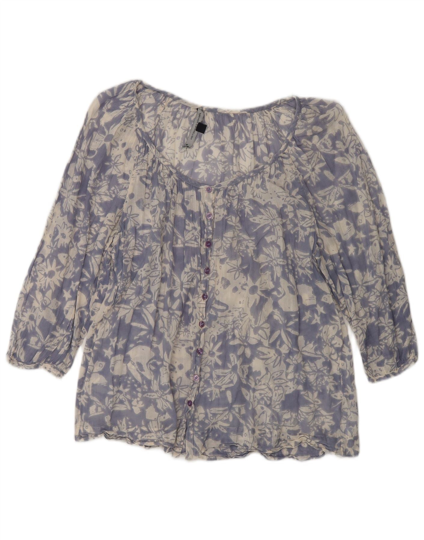FRENCH CONNECTION Damen-Hemdbluse mit 3/4-Ärmeln, UK 12, Mittelblau mit Blumenmuster