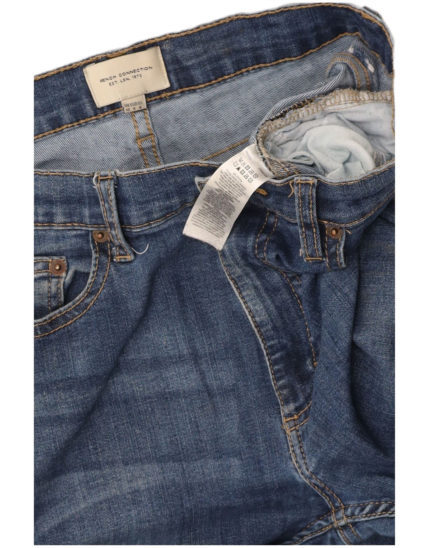 FRENCH CONNECTION Damen Skinny Jeans UK 10 Small W27 L30 Marineblaue Baumwolle