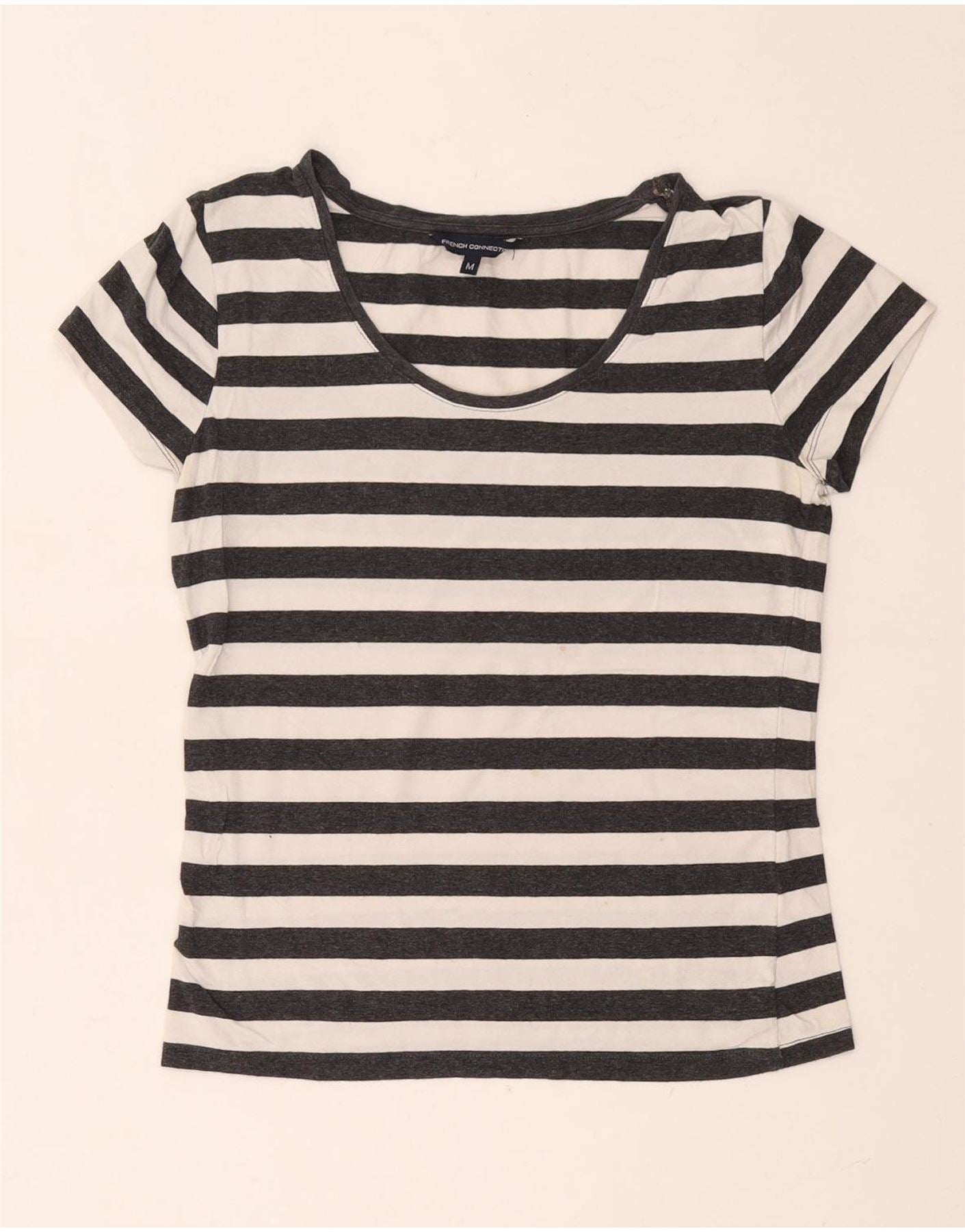 FRENCH CONNECTION Damen T-Shirt Top UK 12 Mittelgrau gestreift aus Baumwolle
