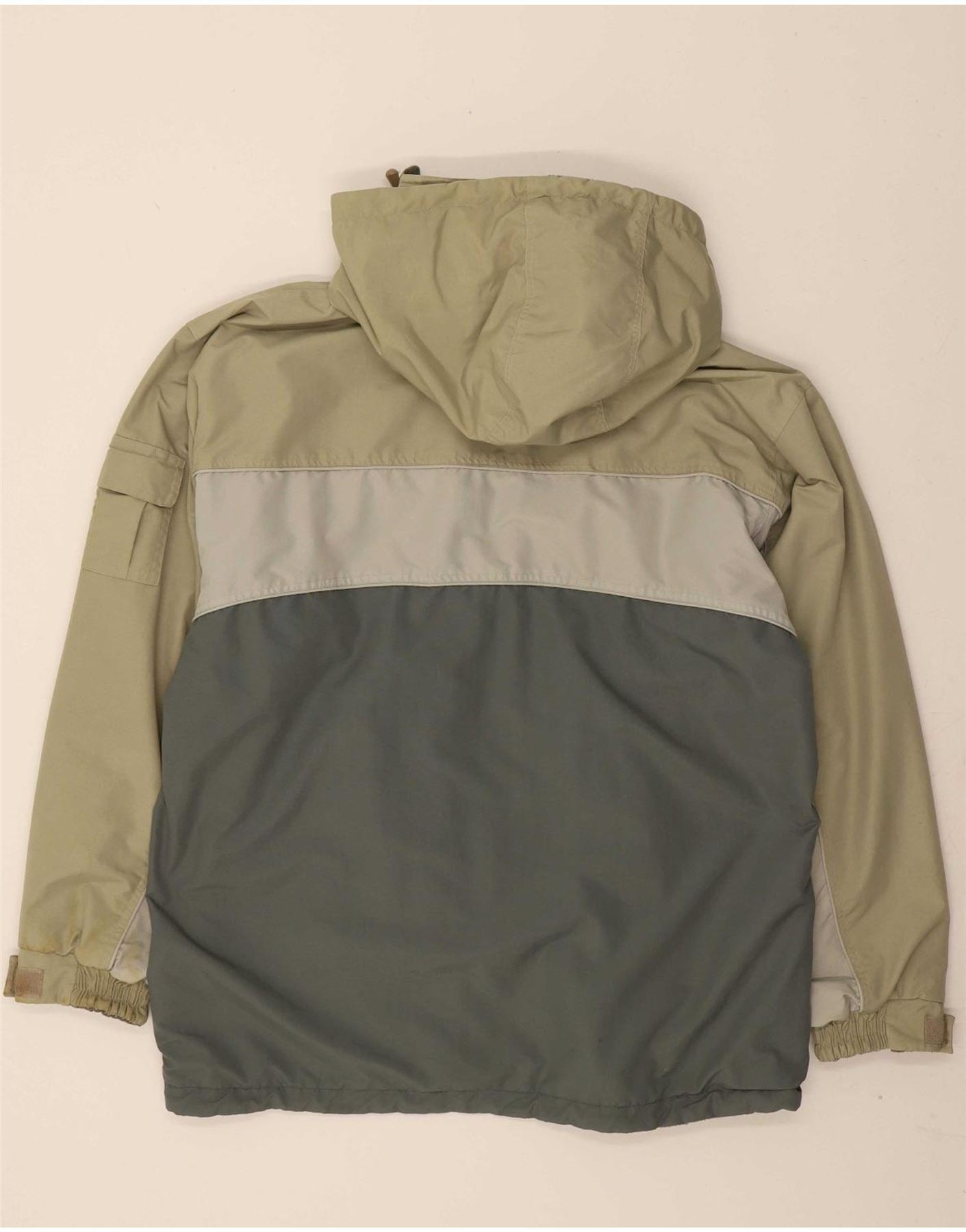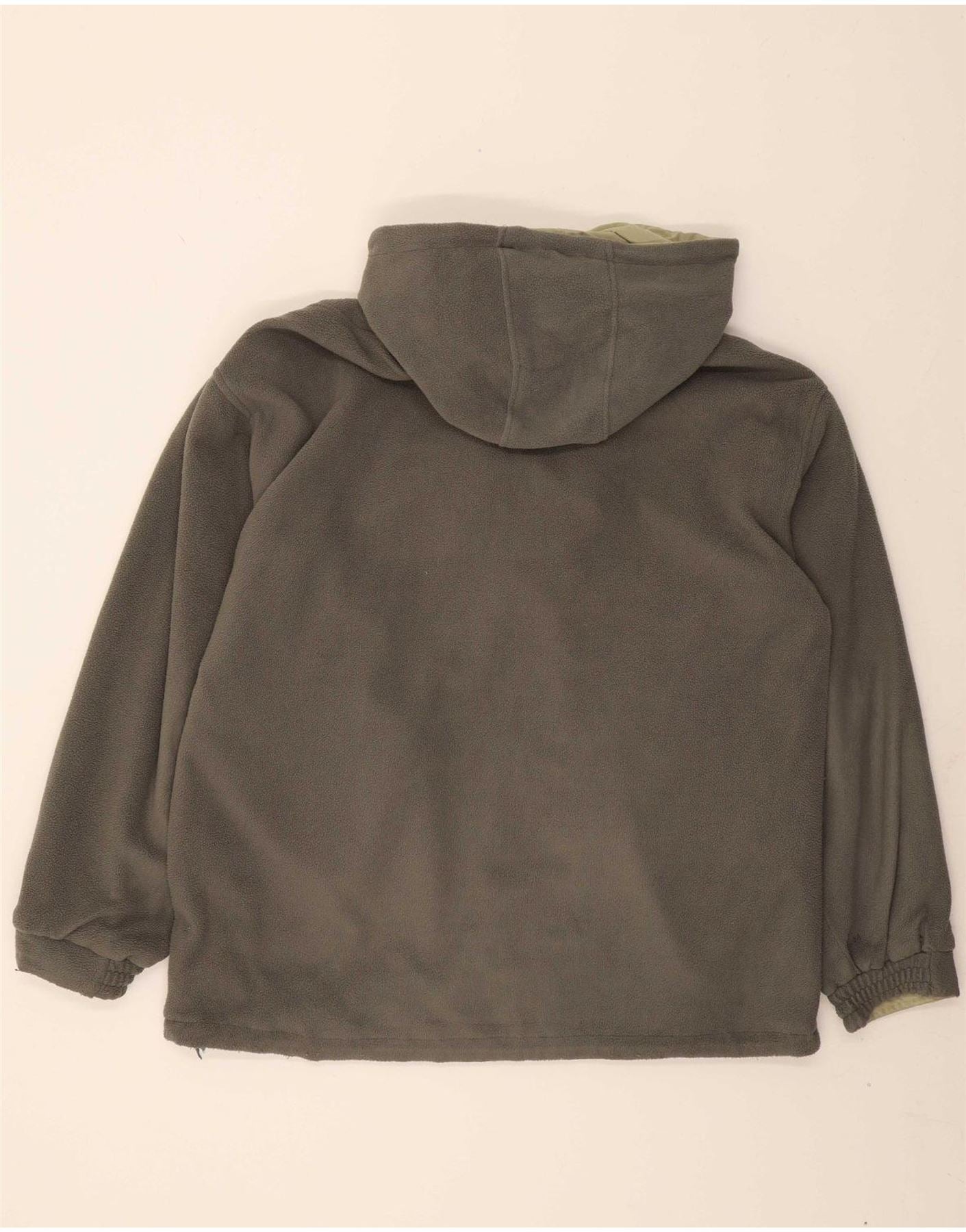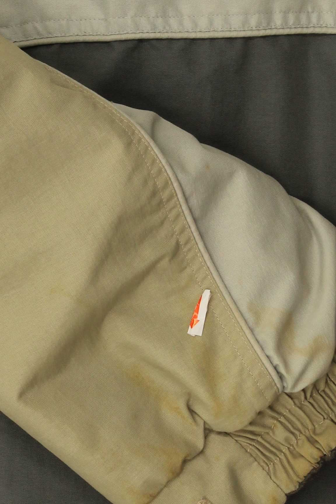 - AI Condition: Pre-owned | grade: Moderate | location: On the beige fabric of the right sleeve cuff | type: Stains | grade: Minor | location: General pilling and wear on the fleece material | type: Visible wear
