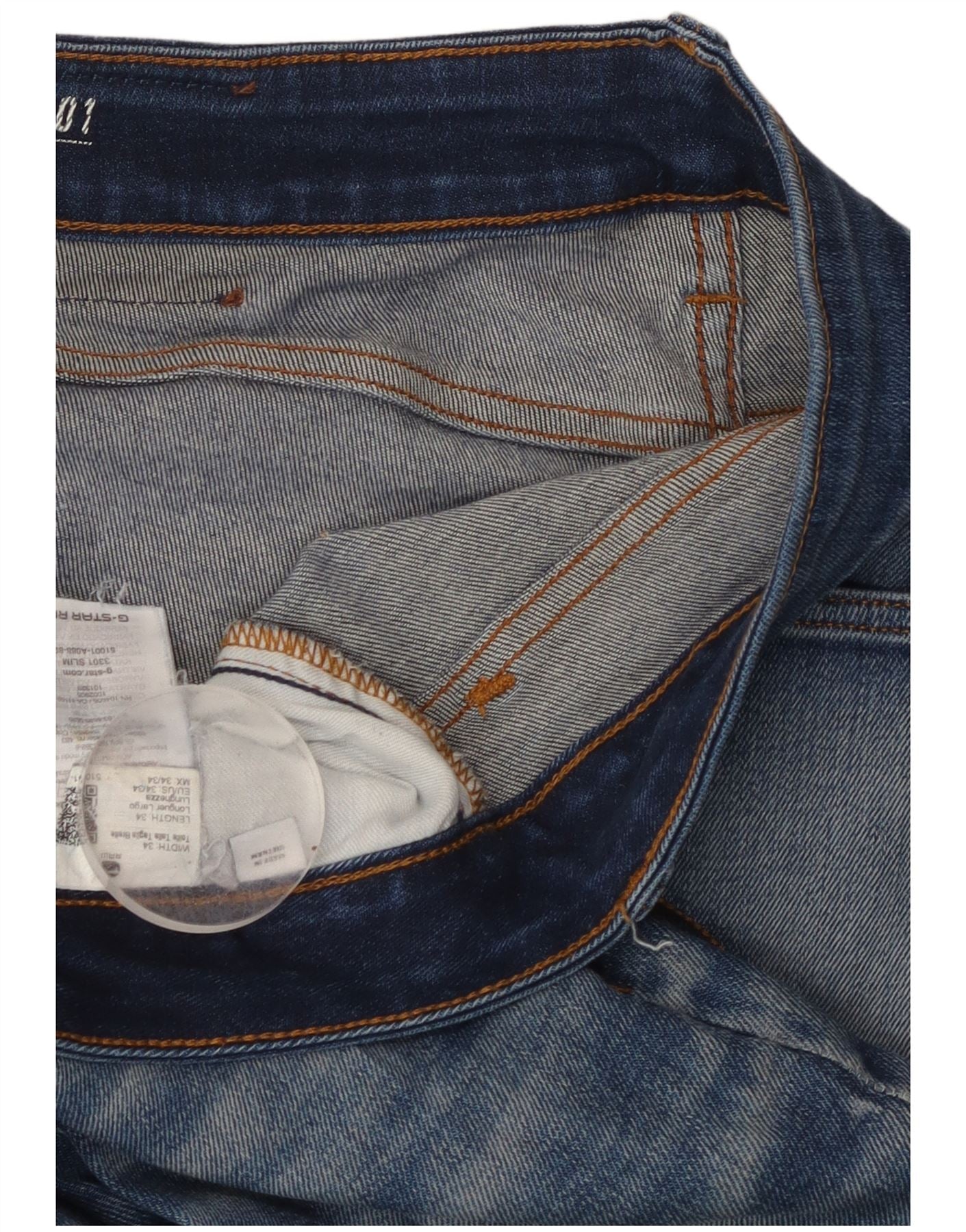 G-STAR Mens 3301 Slim Jeans W34 L34 Blue Polyester