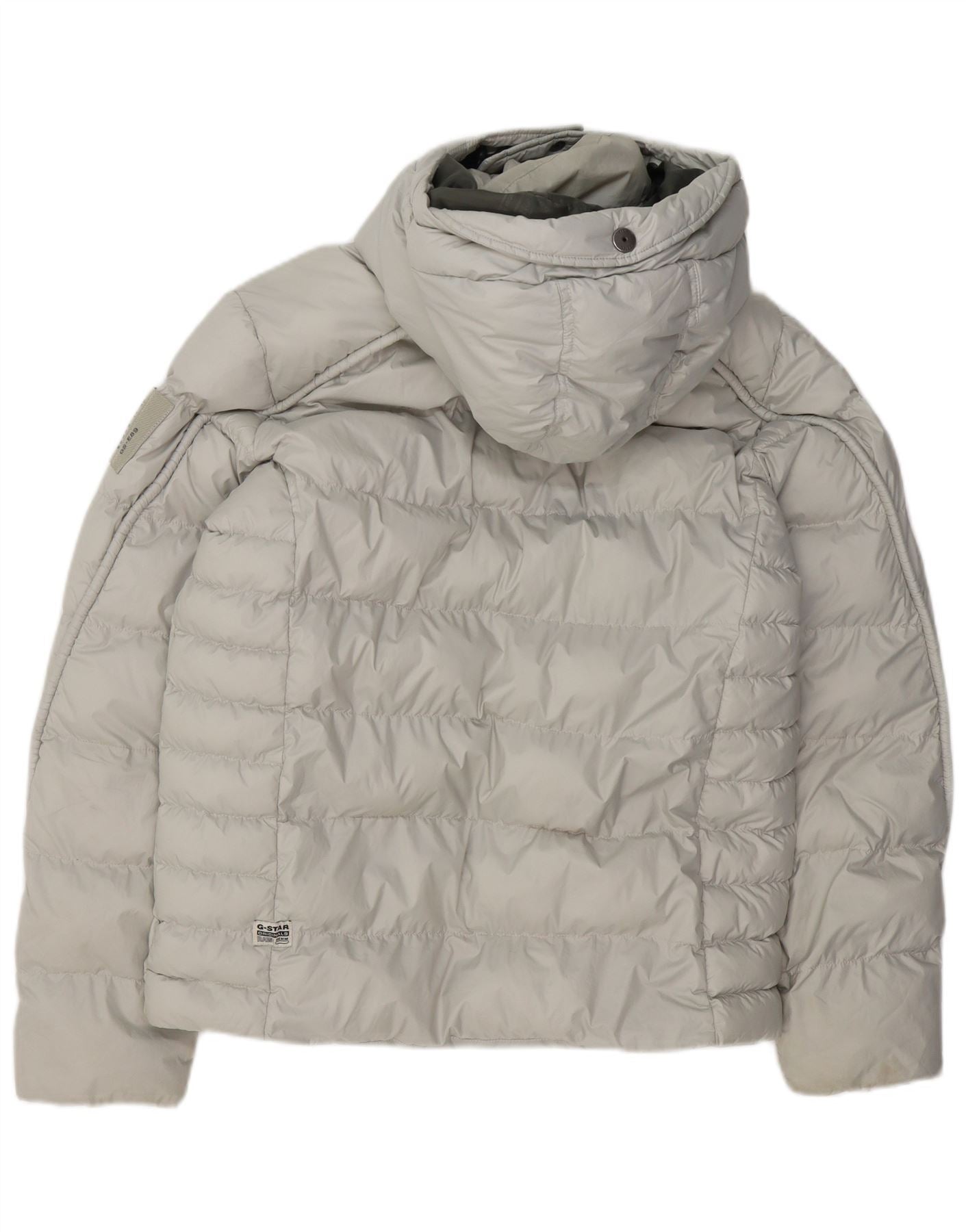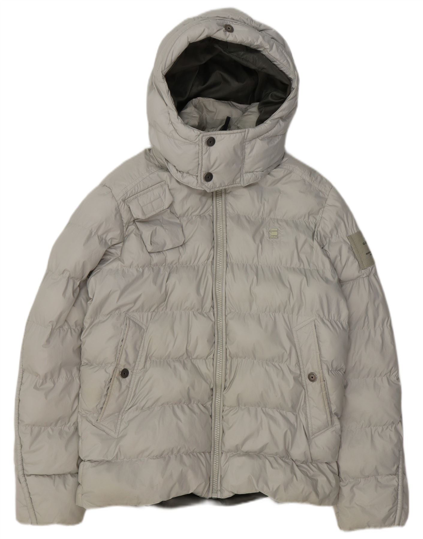 G-STAR Wattierte Herrenjacke mit Kapuze, UK 38, mittelgraues Polyester