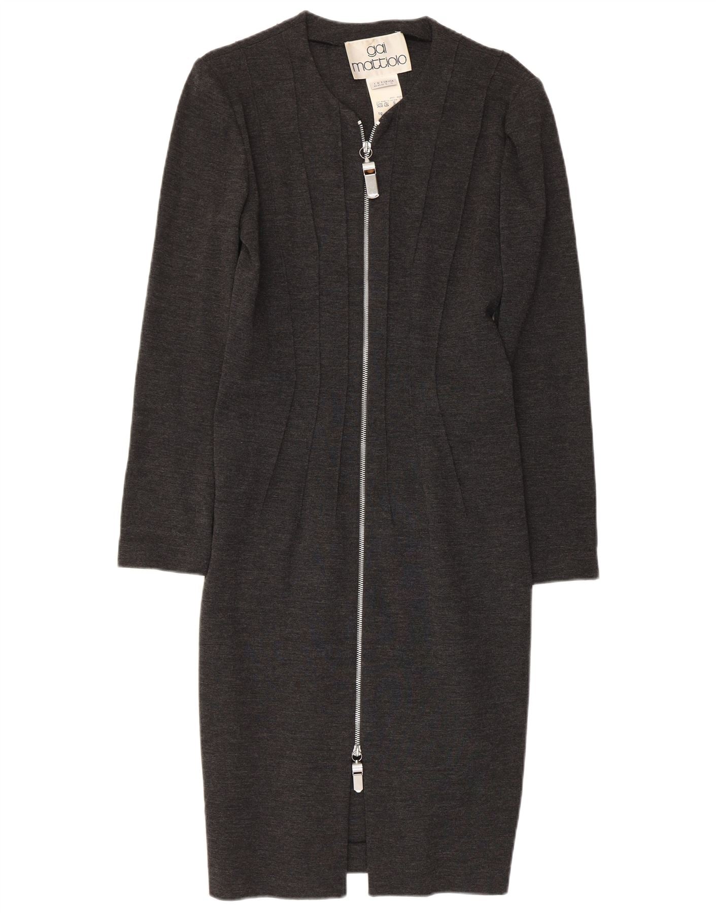 GAI MATTIOLO Womens Long Sleeve Bodycon Dress UK 16 Large Grey Virgin Wool