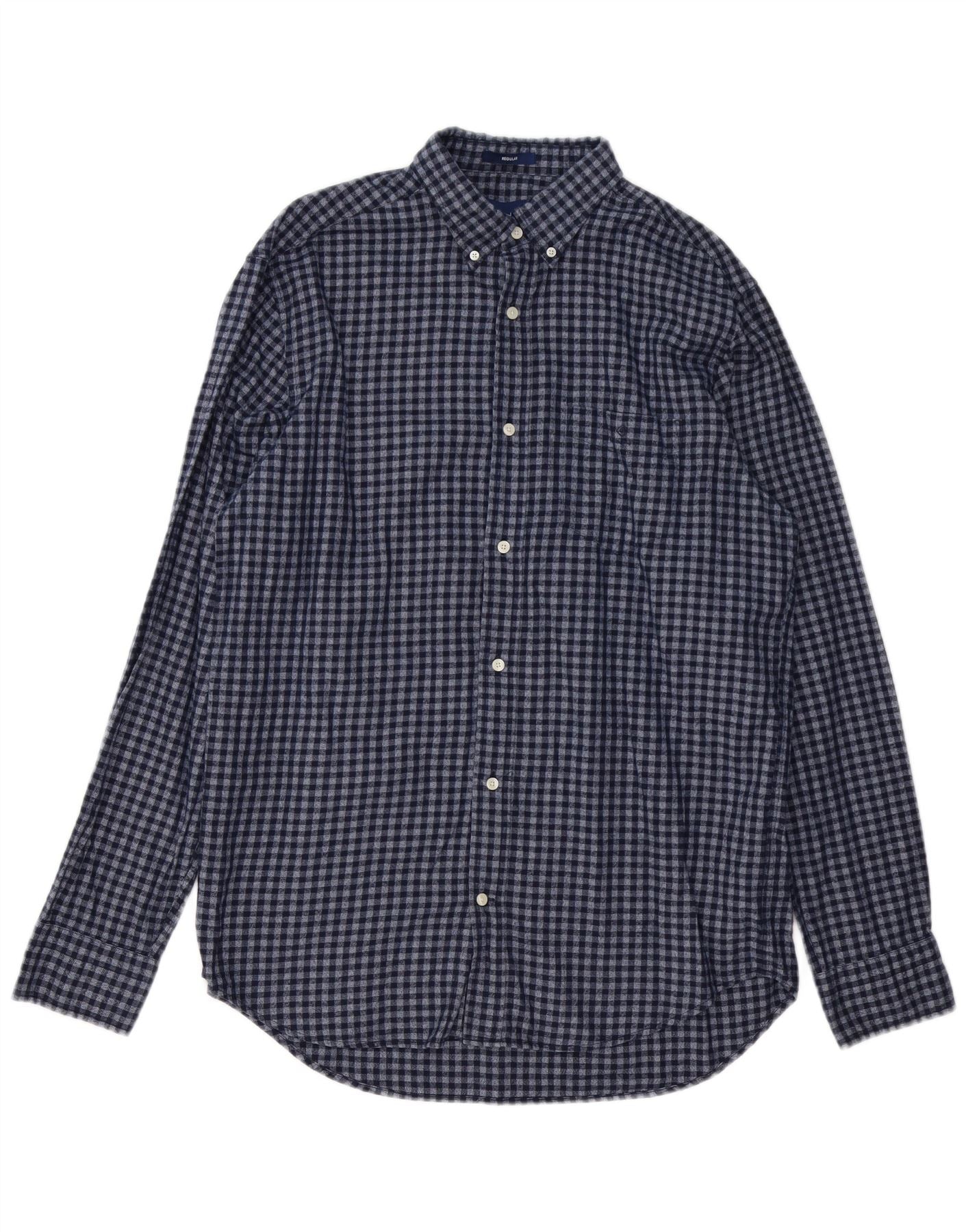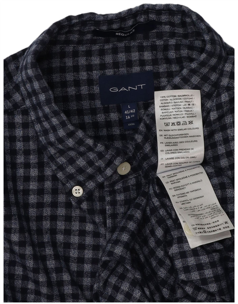 GANT Herren-Flanellhemd, Größe 41/42, 16 1/2, großes marineblaues Gingham