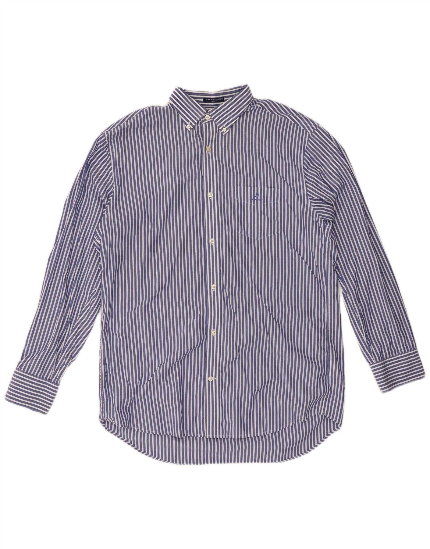 GANT Herren-Hemd mit normaler Passform, Größe 41/42, 16 1/2, große blaue Nadelstreifen-Baumwolle