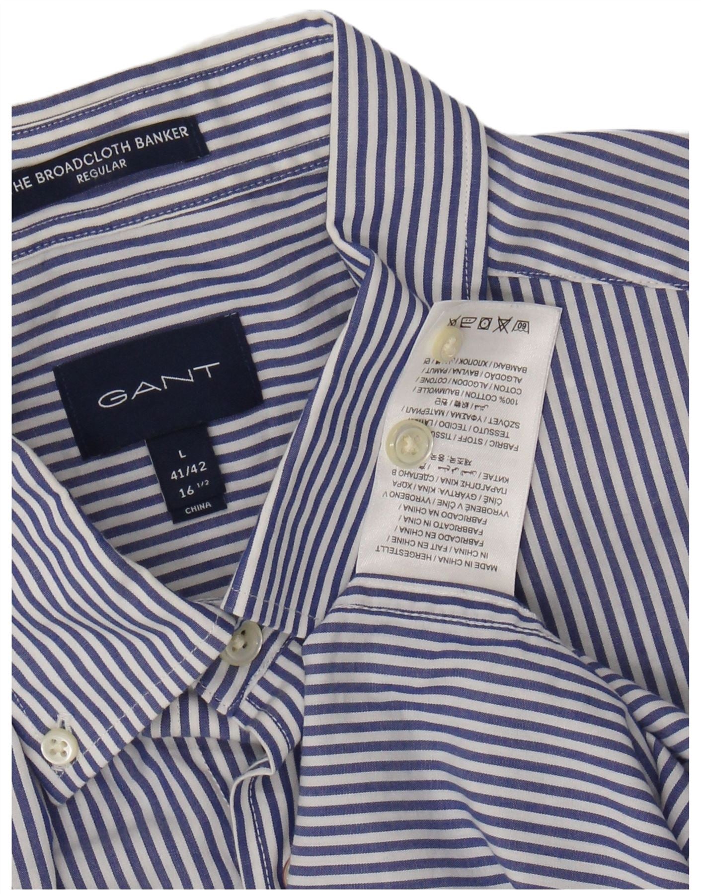 GANT Herren-Hemd mit normaler Passform, Größe 41/42, 16 1/2, große marineblaue Nadelstreifen